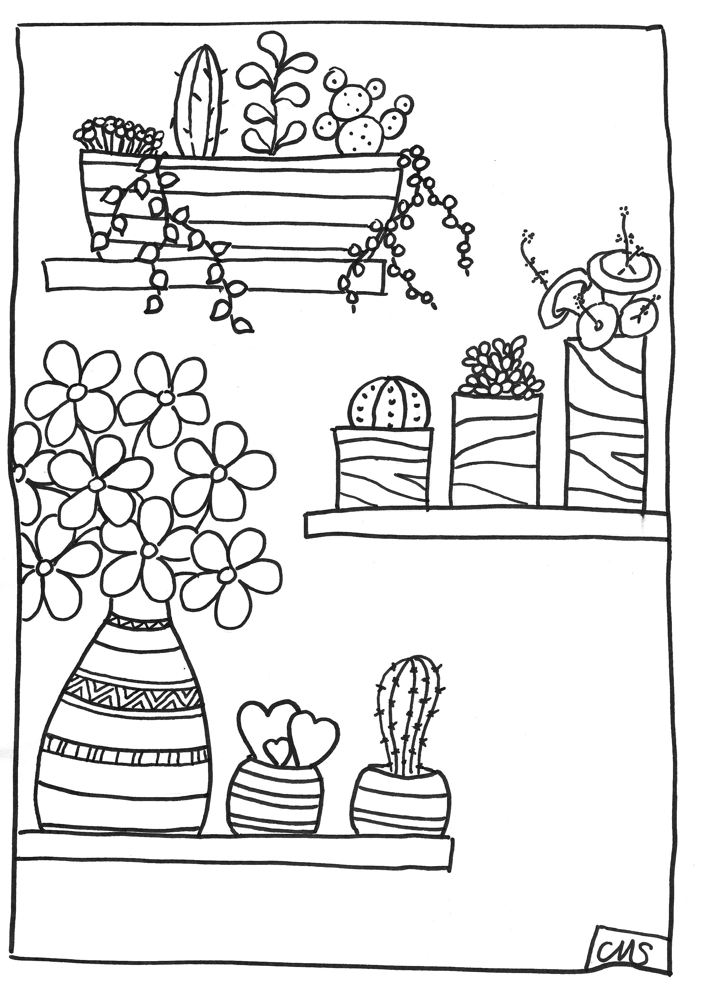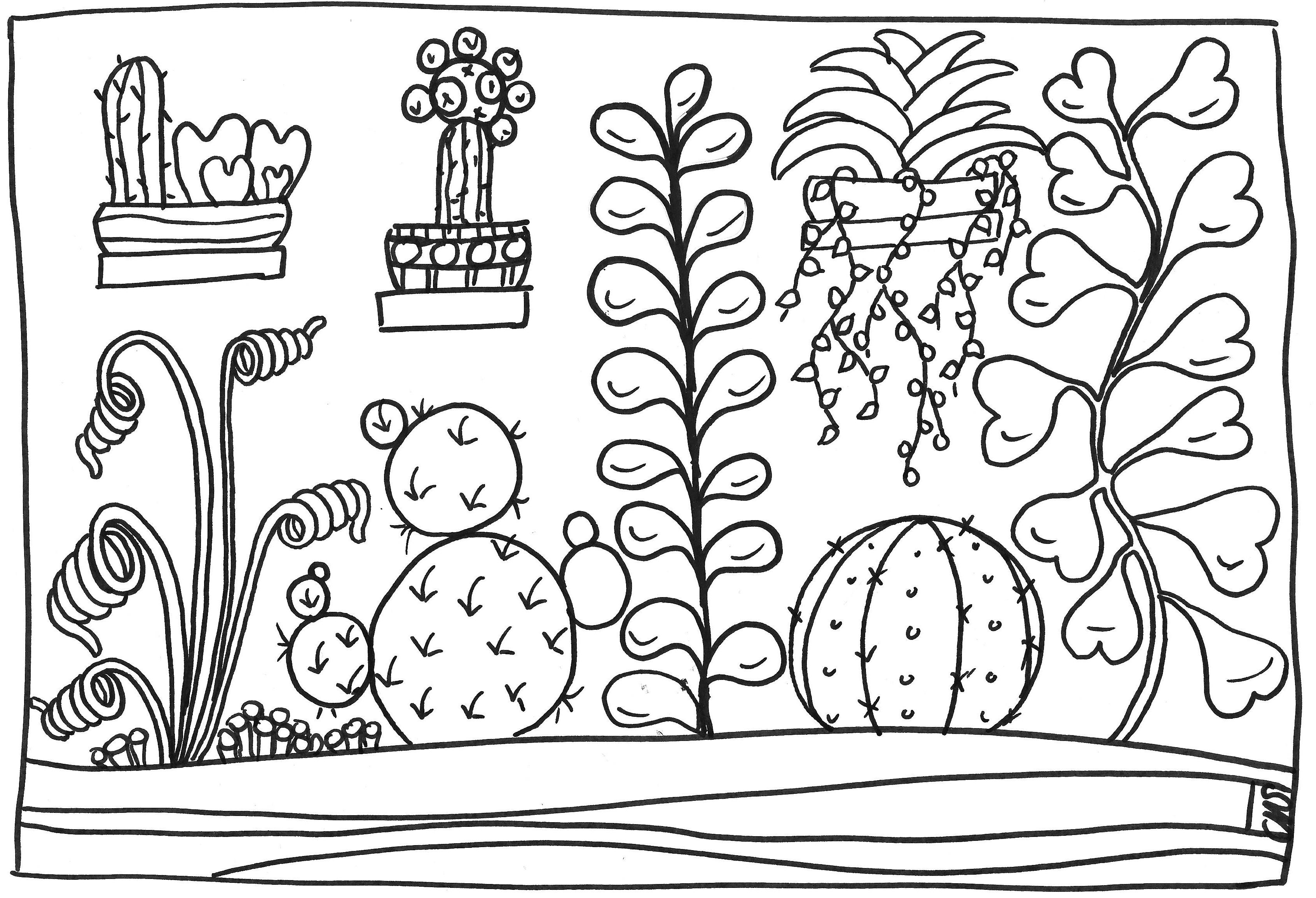 Ce qui devait arriver arriva, voila les coloriages inspirés par les succulentes et les cactus. Commande de la gaufrette!