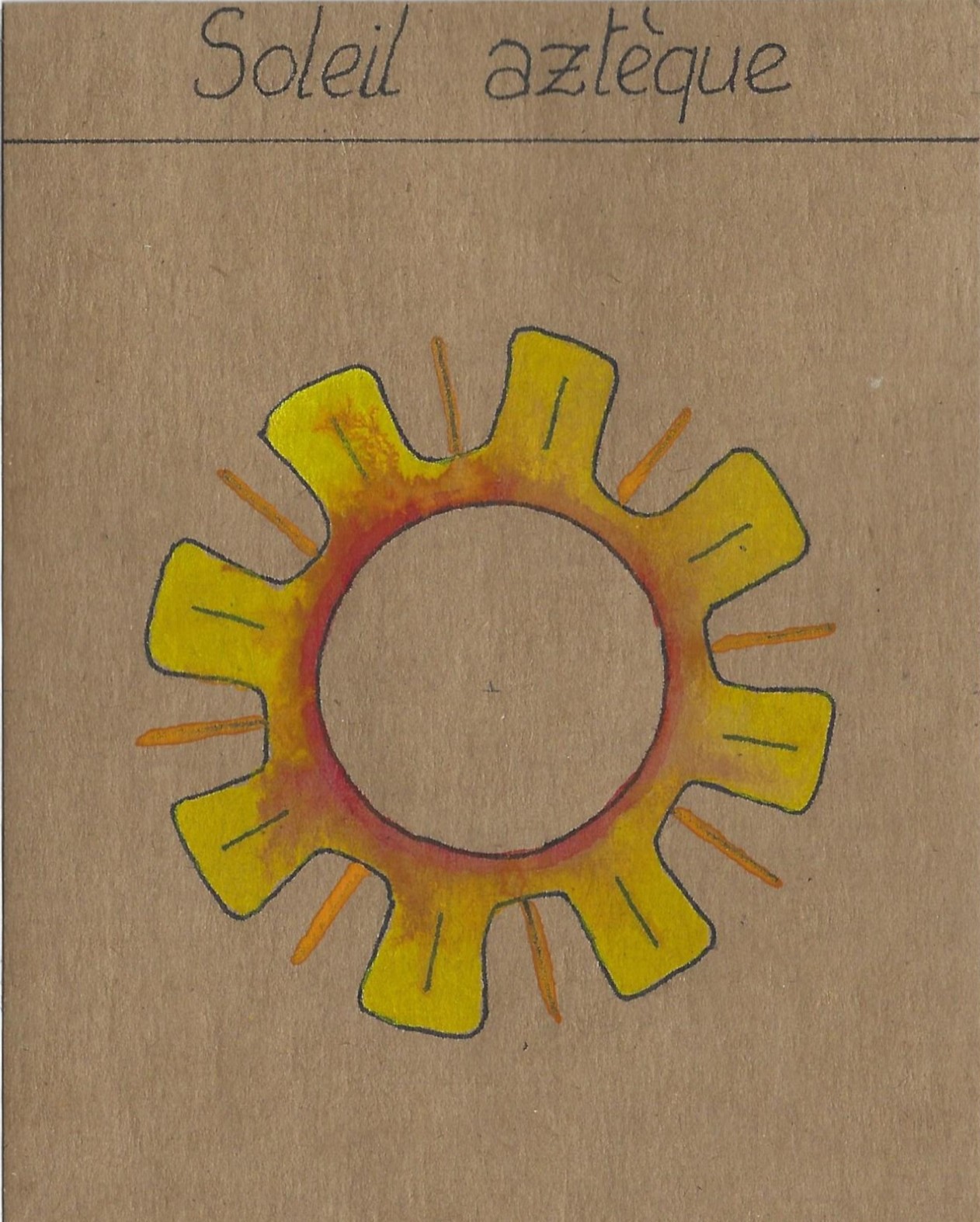 Deuxième symbole solaire, après le soleil des Zia, j’ai choisi cette fois la représentation des aztèques. Parce que son esthétique me parle.