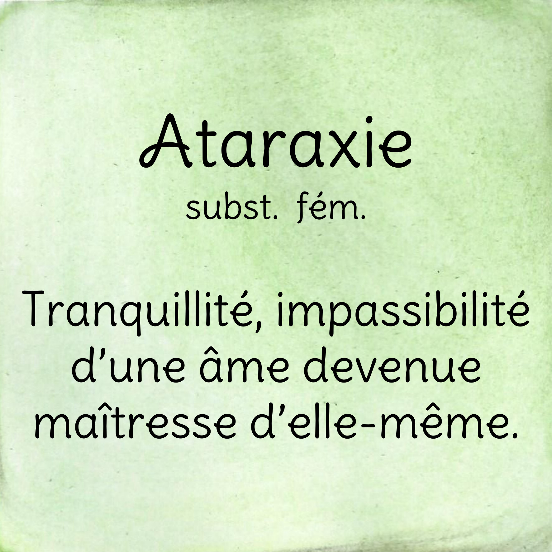 Alors que je suis en train d’écrire les articles des cartes de la semaine, je me suis souvenue que j’avais ce mot dans ma liste…. et je pense qu’il correspond bien à mon état d’esprit actuel…. je vous souhaite de trouver vous aussi l’ataraxie!!