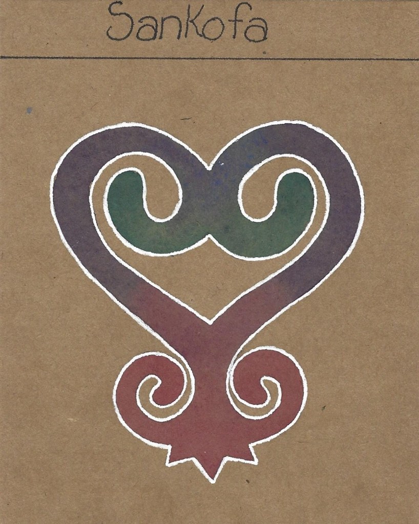Sankofa est un symbole adrinka signifiant « retourne le chercher ». Il représente la sagesse d’apprendre du passé pour construire le futur.