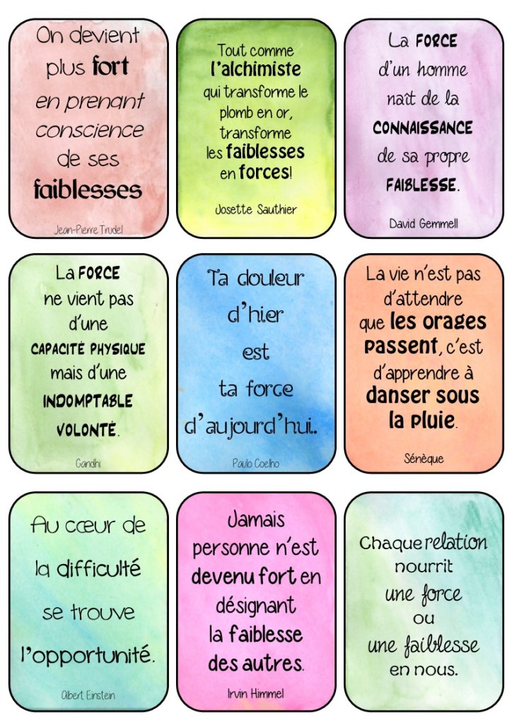 La plupart du temps, il nous est très facile de penser à nos faiblesses. Mais elles ne sont qu’une partie de ce que nous sommes, la partie qui nous ralentit sur noter chemin, la partie qui nous sert d’excuse aussi. En fait, nos faiblesses peuvent se transformer en véritables forces si nous les laissons s’exprimer. Par exemple, elles nous permettent de les reconnaitre chez autrui, et nous permettent de faire preuve de plus d’empathie à son égard.