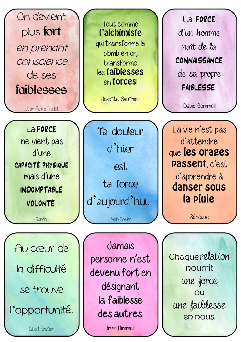 La plupart du temps, il nous est très facile de penser à nos faiblesses. Mais elles ne sont qu’une partie de ce que nous sommes, la partie qui nous ralentit sur noter chemin, la partie qui nous sert d’excuse aussi. En fait, nos faiblesses peuvent se transformer en véritables forces si nous les laissons s’exprimer. Par exemple, elles nous permettent de les reconnaitre chez autrui, et nous permettent de faire preuve de plus d’empathie à son égard.