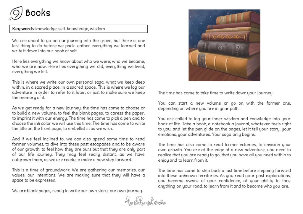 This week I decided to print both my twin journeys (the Alchemist grove and Le Bosquet de l’Alchimiste), and to put them in their own books. So that, in a few years, I will be able to read them and to remember, probably with tenderness, compassion and amusement too, where I was in my life path this year. I also keep a journal, on which I don’t write everyday, but where I log things that seem important to me, in order to both step back and remember.
