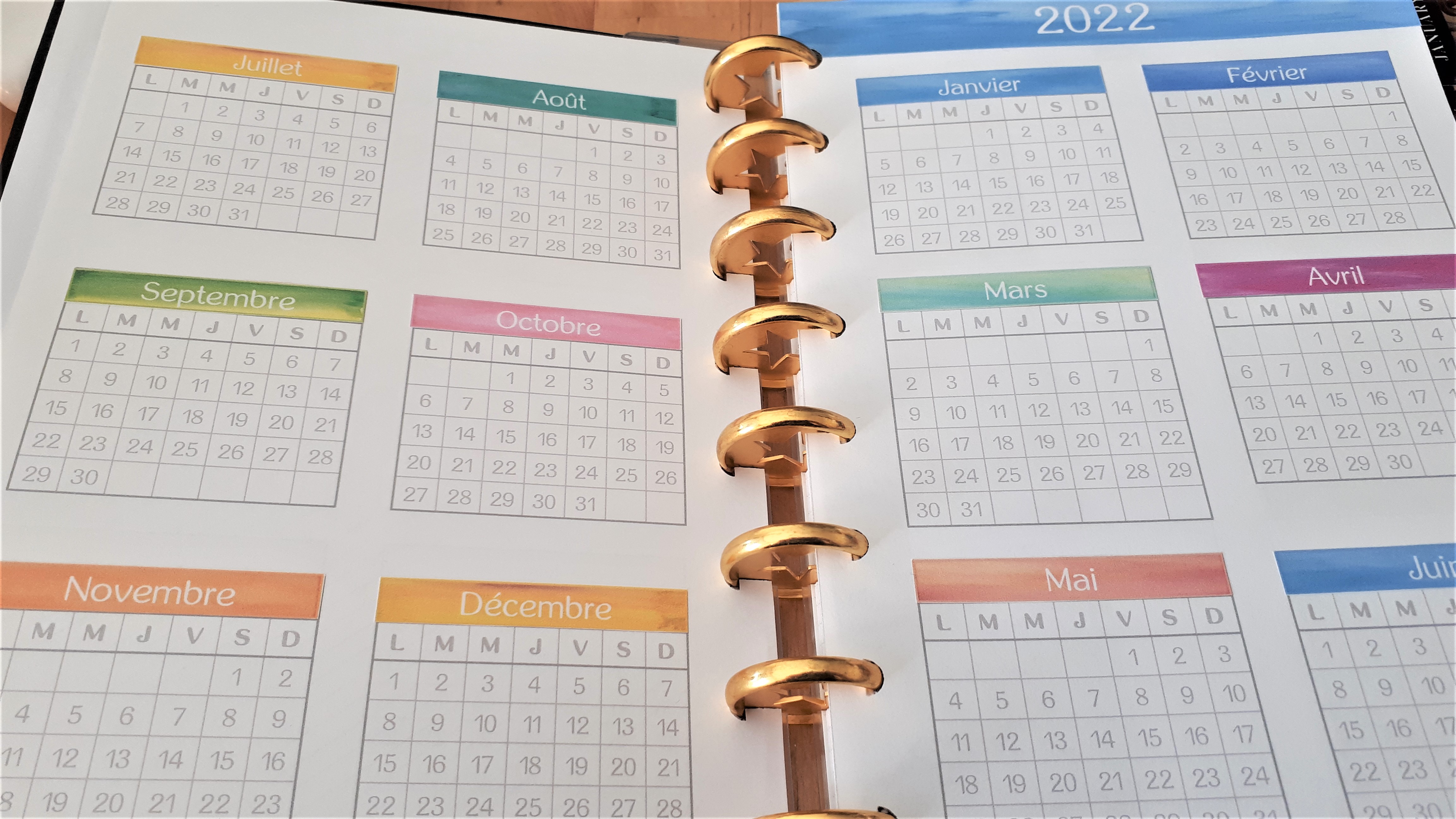 Je me suis rendue compte que j’avais besoin de ces pages de calendrier dans mon planner, ne serait-ce que pour savoir le nombre de semaines que chaque mois contient, pour pouvoir ajuster le bidouillage de mes stickers!