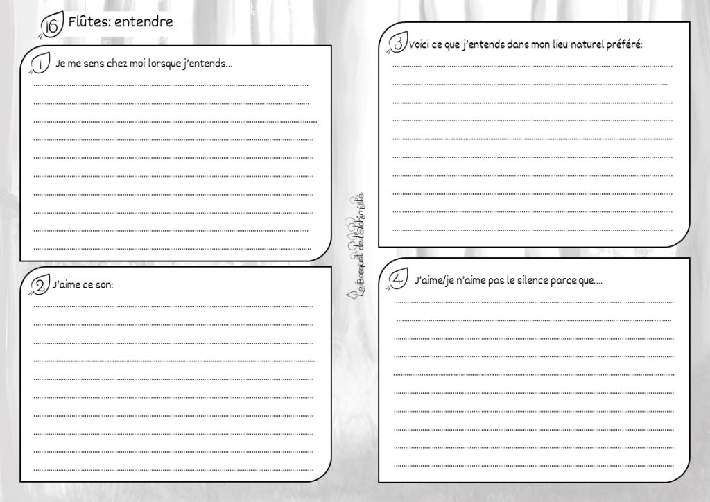 Nous continuons d’explorer nos sens. Cette semaine, nous nous concentrons sur l’ouïe. Le matin, surtout si j’ai dormi la fenêtre ouverte, j’aime être réveillée par les bruits de mon environnement…. je reste les yeux fermés, mon corps repose encore, en paix. Et je sais que je suis chez moi grâce à ces sons familiers. Je ne rêve plus. Je m’ancre dans une nouvelle journée accompagnée de ces sons. Les oiseaux, le personnes qui peuvent parler, le vent qui fait bouger mes rideaux perlés… Je peux passer du temps à écouter la vie, dehors. Habituellement, mon chat sent que je suis éveillée et elle vient en ronronnant… ce qui est aussi un son qui m’ancre dans ma réalité.