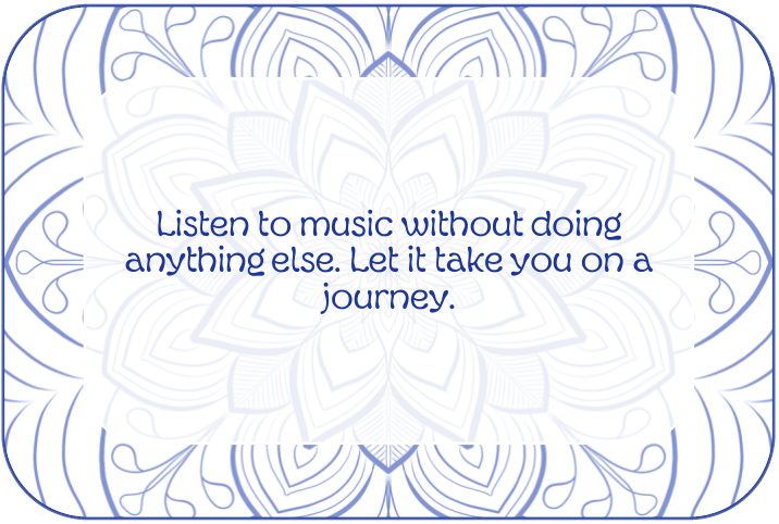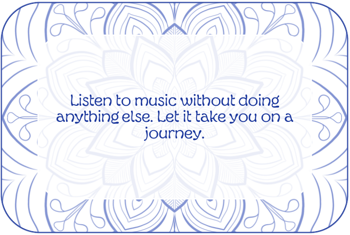 Today, sit confortably, and let the music take you on a journey. Don’t do anything while listening, just close your eyes and go with the flow. Let go of anything else, until you feel appeased and rejuvenated.