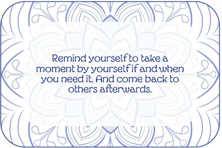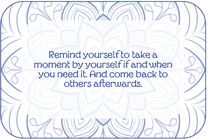 Christmas day is a day I spend with my family. I really appreciate to see them all (well most of all, I’ll miss you, sis!). But it’s also a day when my daughter’s absence really weights on me… So, now and then, when it feels too heavy, I just step back, acknowledge my emotions, welcome them, and let them go. Then I can go back to my family and enjoy the day.