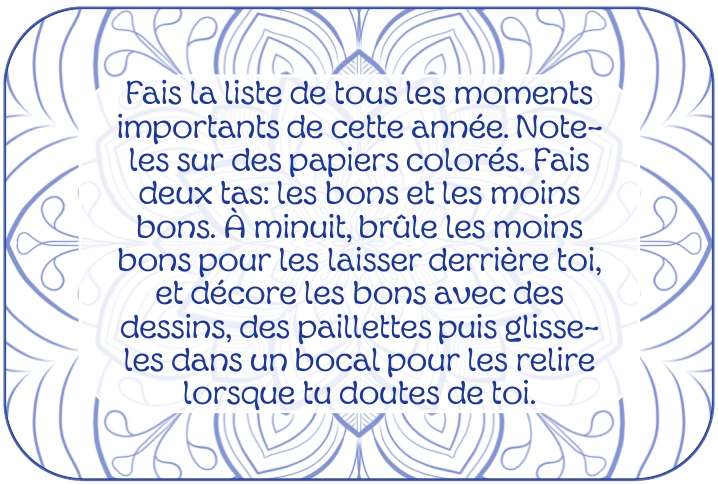 Je pense que tout au long de l’année, j’inscrirai des moments agréables, surprises, découvertes, sur des bandes de papier avant de les transformer en étoiles. Parce que je pense que voir le bocal se remplir petit à petit me fera le plus grand bien!
