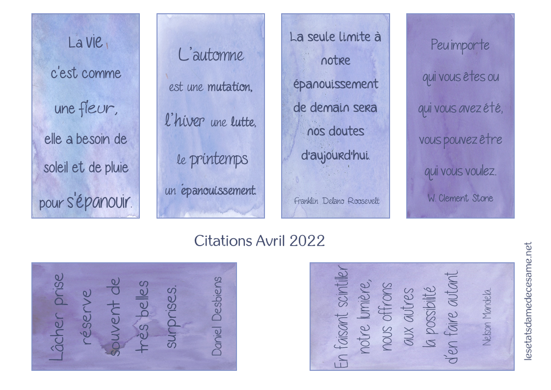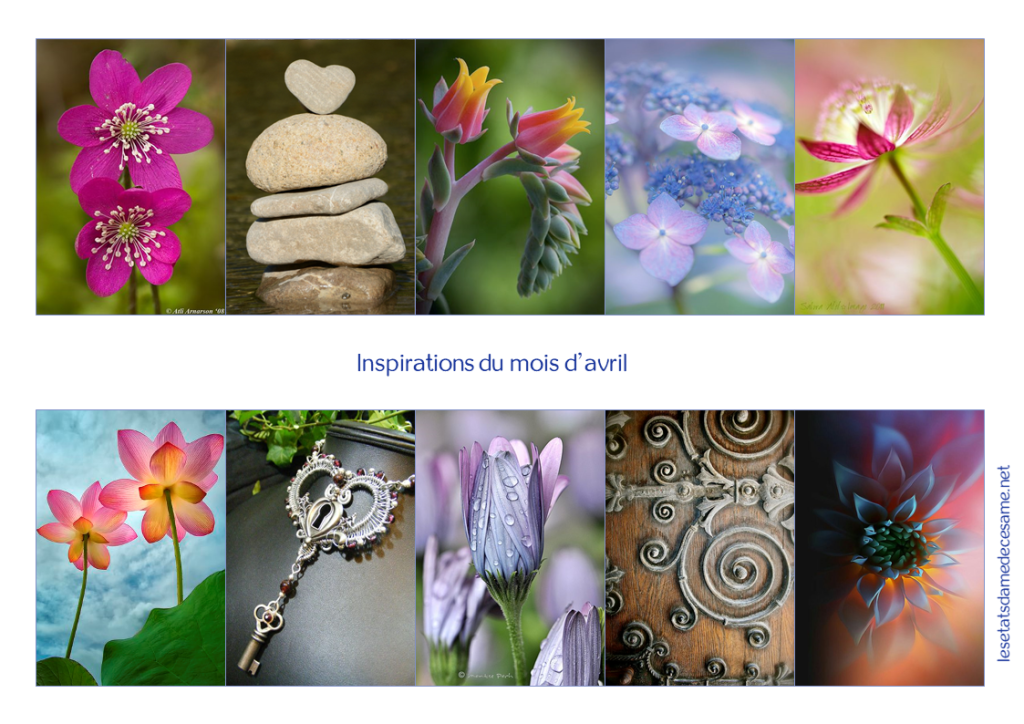 J’avoue, j’ai pris beaucoup de plaisir à associer des images à chacune des étapes du cheminement du mois d’avril, et je pense reprendre les précédents pour en faire des jeux aussi… et continuer de le faire chaque mois… parce qu’elles ouvrent à tellement de possibilités! Et chaque image est vraiment inspirante.