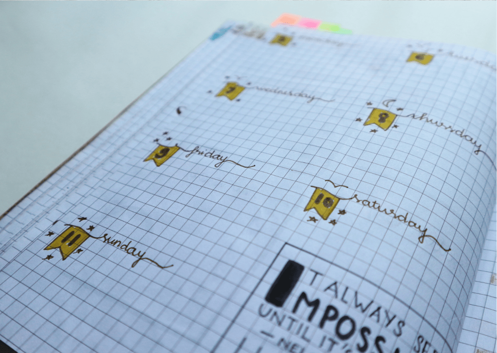 - regarder mon emploi du temps de la semaine et placer stratégiquement des moments courts de bien-être