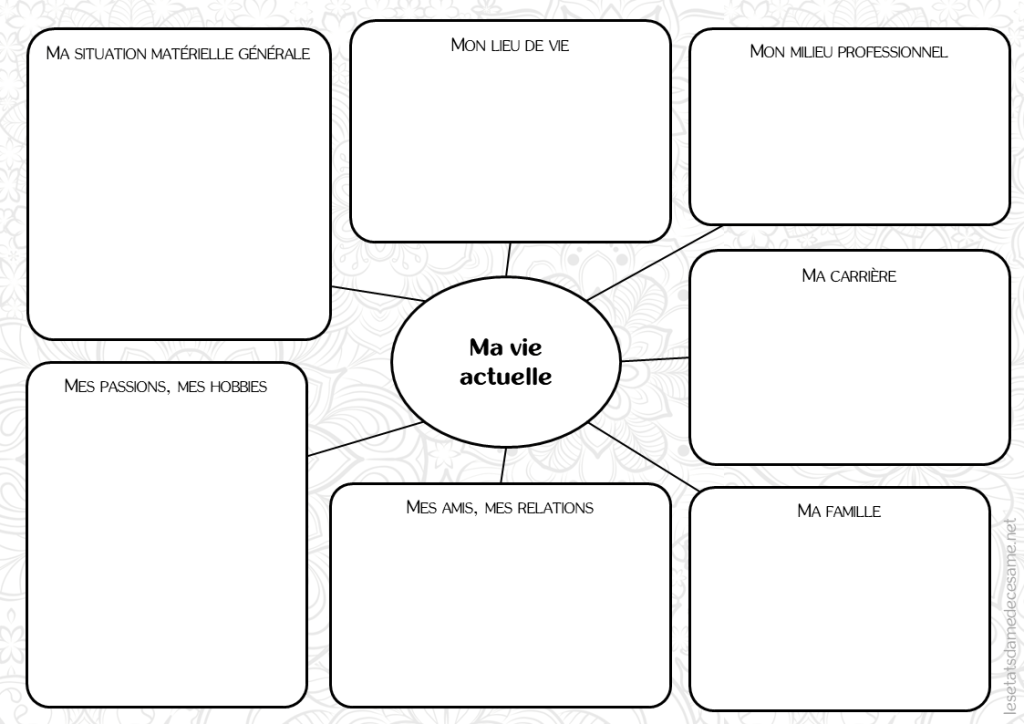 J’aime faire une carte mentale lorsque je veux avoir une vision globale sur un projet ou une idée… Aujourd’hui, je vous propose de remplir la vôtre, en utilisant ou non le modèle que je vous propose. C’est notre point de départ, notre base.