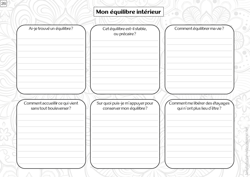 La fiche d’aujourd’hui vous propose de faire l’état des lieu de votre équilibre intérieur et de vous aider à le stabiliser.