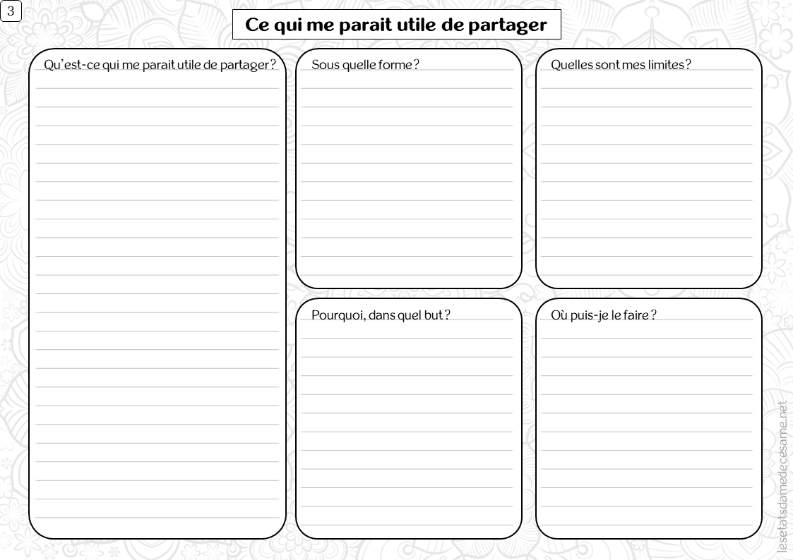 La fiche d’aujourd’hui vous permet de poser les choses et de vous préparer au partage.