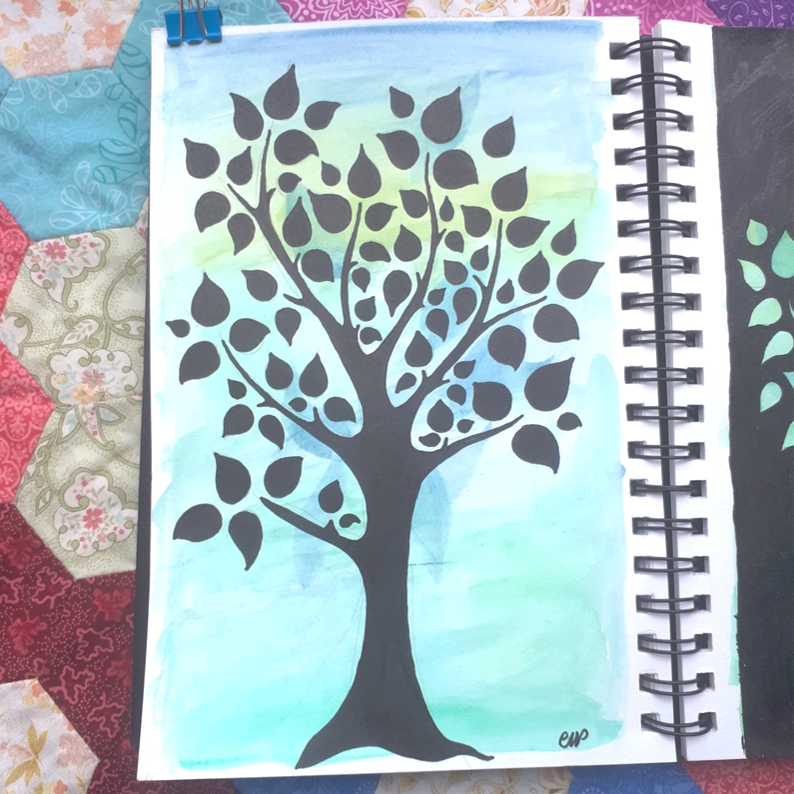 Et puis j’ai eu envie de dessiner un arbre, en noir, juste pour le plaisir… parce que j’aime dessiner des arbres et que ça faisait un moment que je n’avais pas utilisé mon marqueur noir…