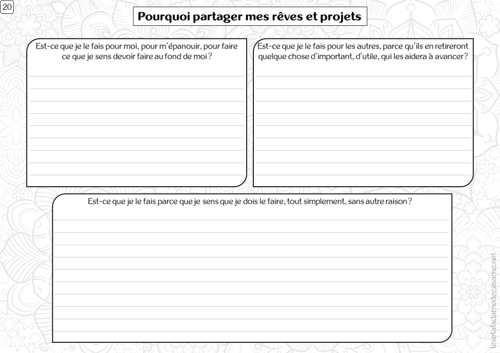Je peux me demander l’objectif ou l’intention que je mets derrière le partage de mes rêves et mes projets.