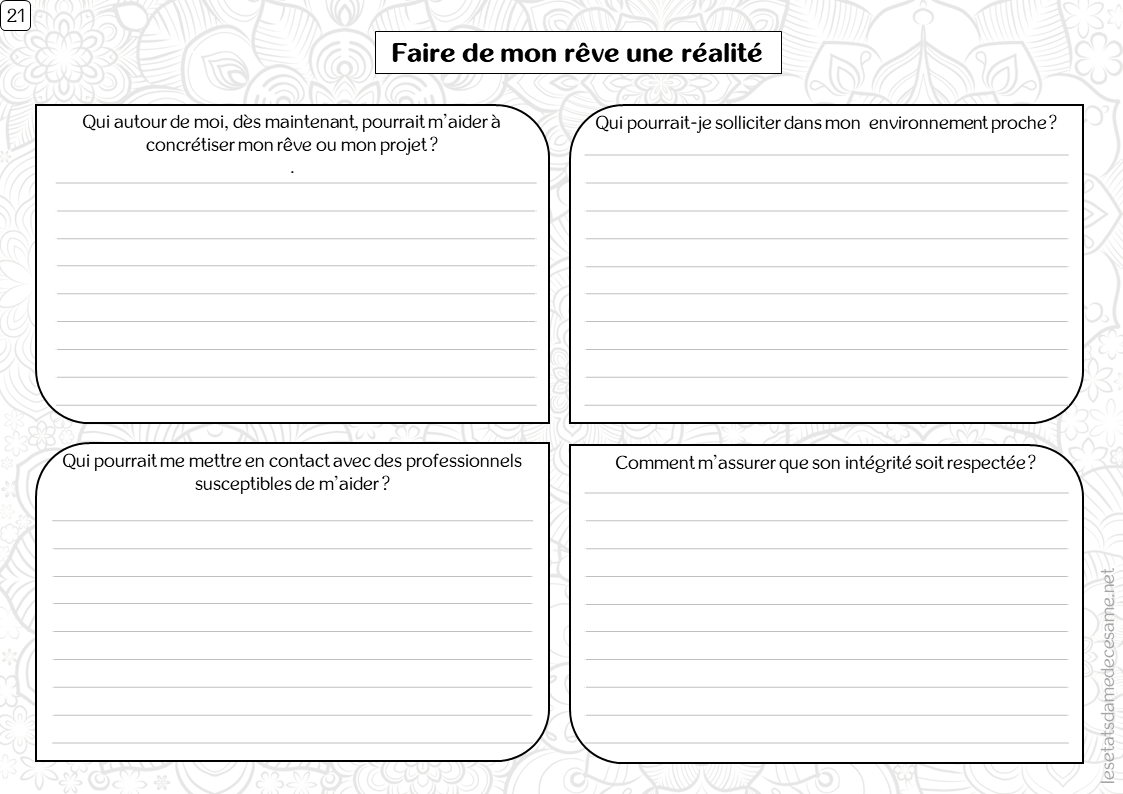 La fiche d’aujourd’hui pour permet de recenser les personnes qui pourraient vous aider à matérialiser vos rêves ou vos projets. un pas à la fois, un jour à la fois.