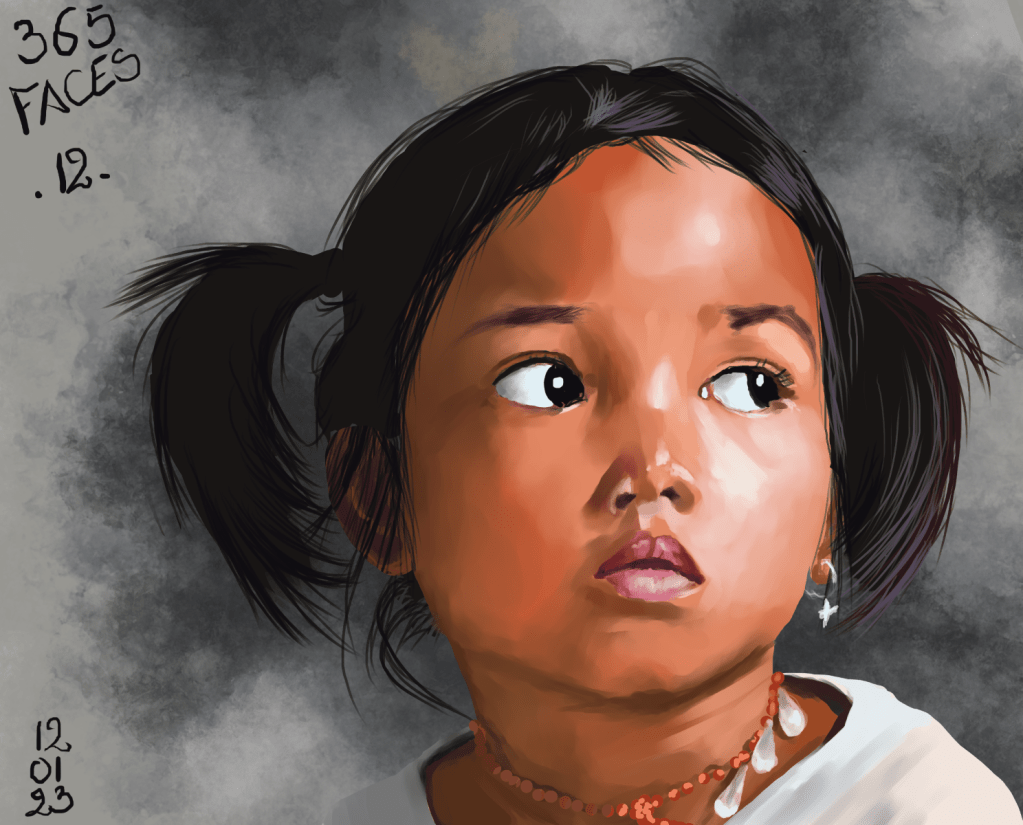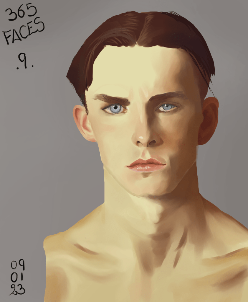 Pfiou! Cette semaine a été un peu complexe côté portraits. J’avoue, j’ai abandonné l’idée de faire quoi que ce soit en 1 heure max… J’ai voulu me concentrer sur la lumière, comme c’est aussi le sujet de mes cours en ce moment… Je suis toujours un peu claire avec mes couleurs, mais je progresse de ce côté là… donc bon, c’est déjà ça. Et puis les références étaient plus que complexes cette semaine!!