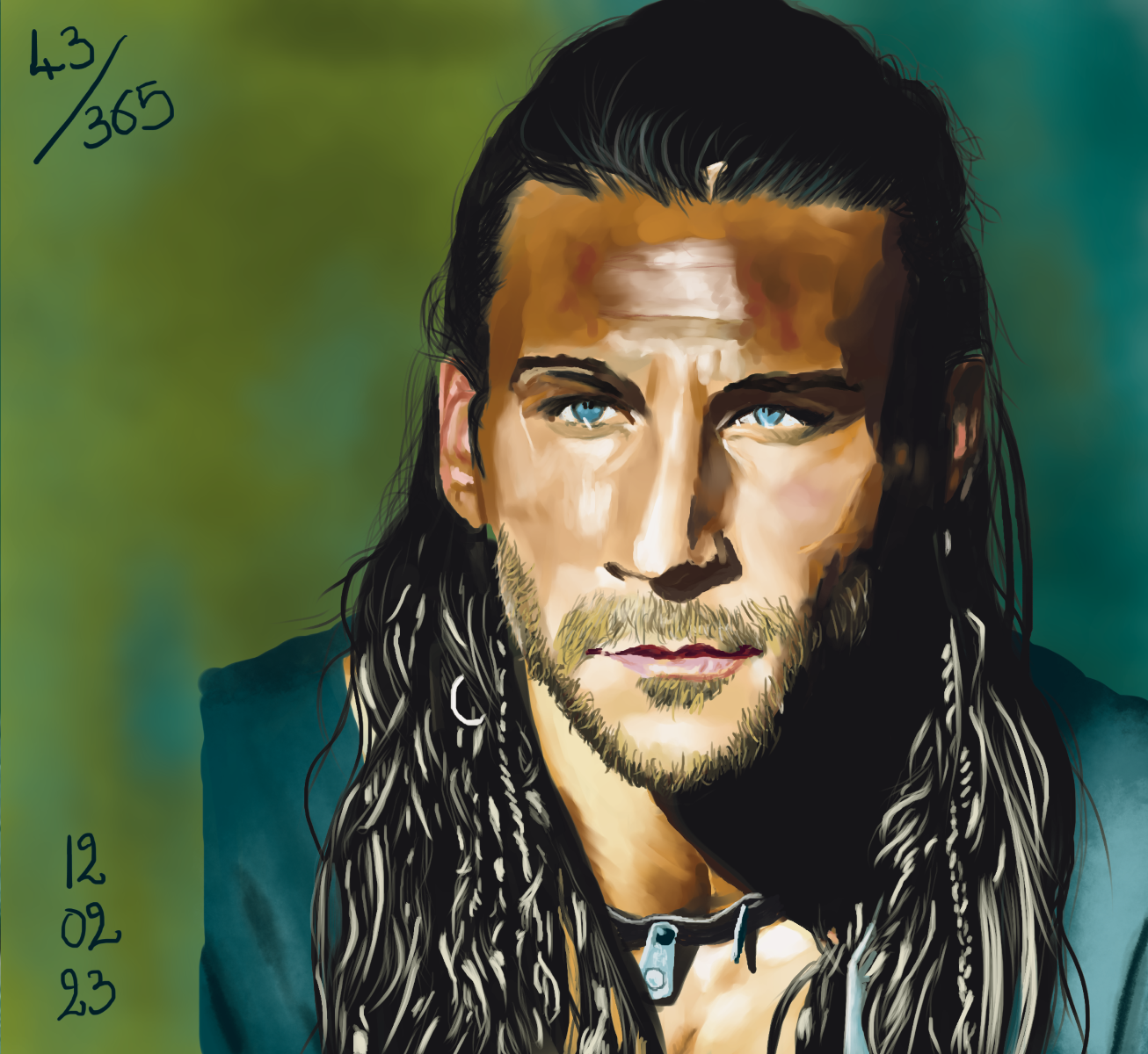 Les jours se suivent et ne se ressemblent pas! On a l’habitude maintenant, avec ce challenge. Je prends chaque jour comme il vient et j’essaie de faire de mon mieux et de m’améliorer. Pas si facile, cette pose, mais aussi super intéressante, surtout au niveau du regard. J’espère avoir rendu l’attitude déterminée de cet homme. Il impose le respect, clairement!