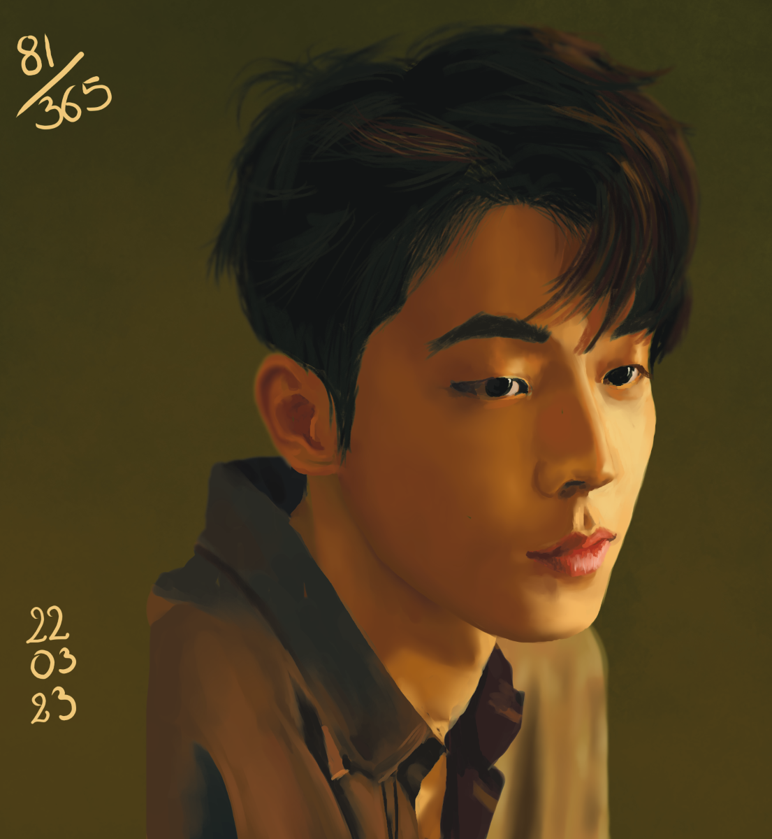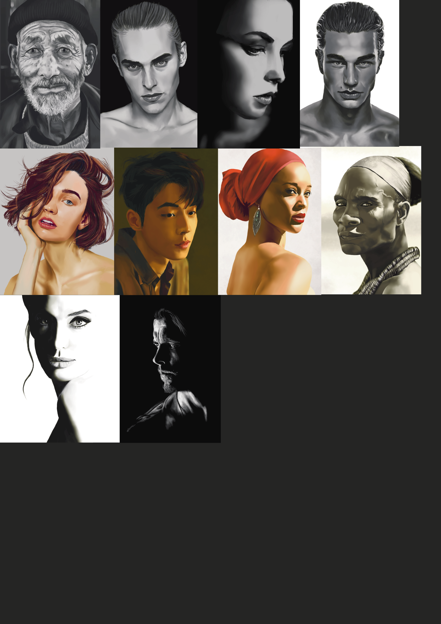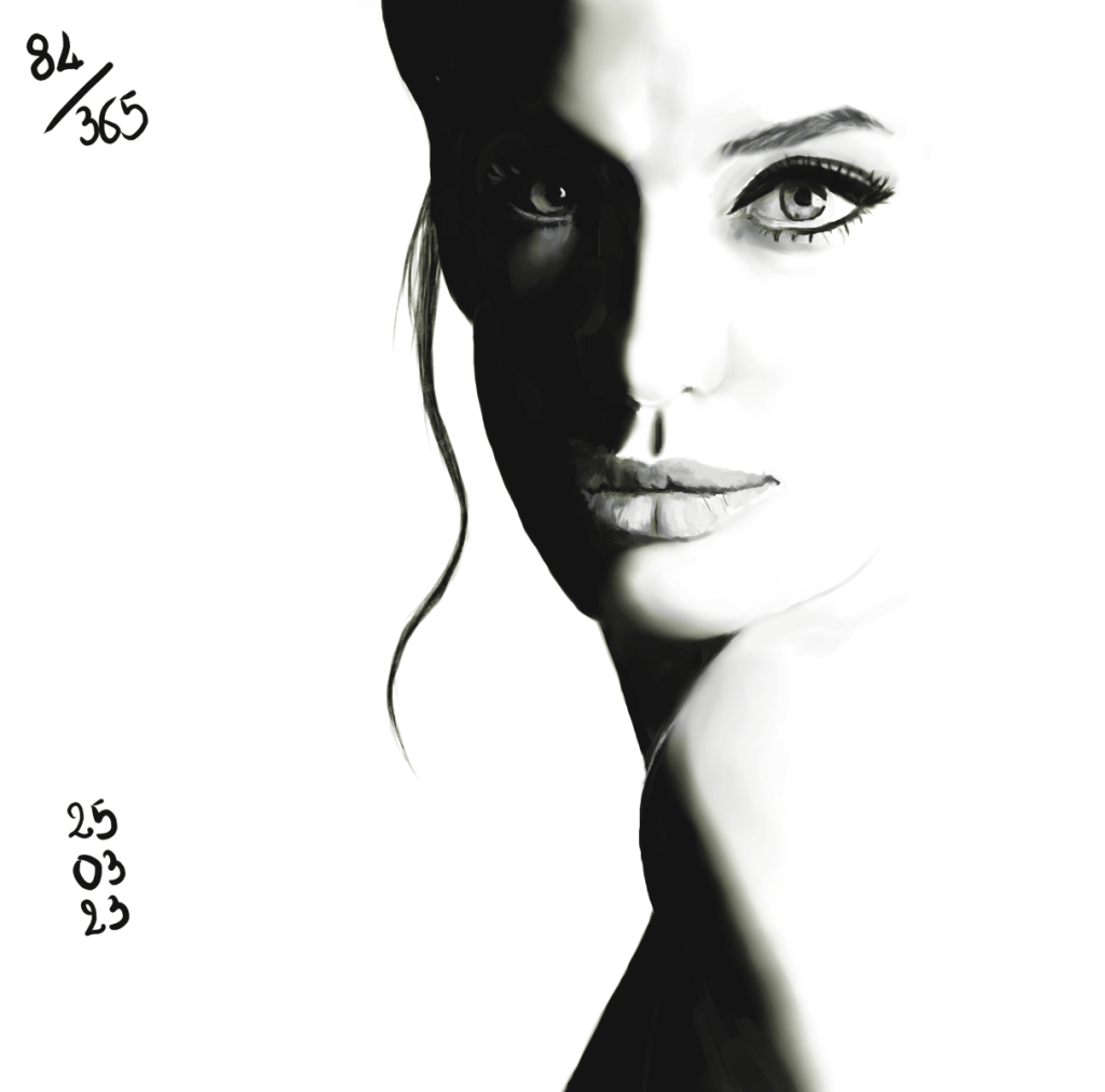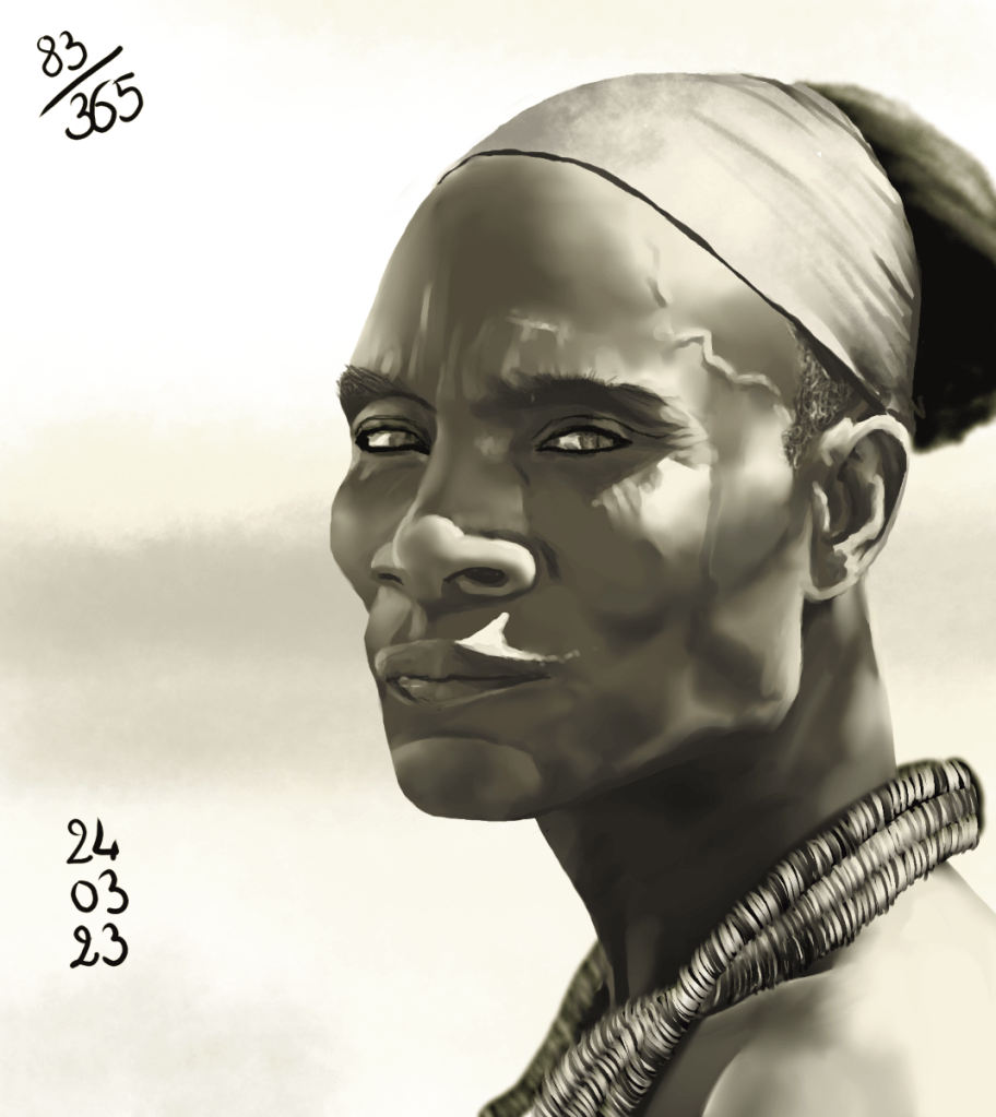 Rappel: Cette année, je participe au challenge 365 visages. Une étude de portrait par jour, tous les jours de l’année. Il existe des tas de groupes ou de propositions pour réaliser ce challenge. Quant à moi, puisque j’ai repris les cours, j’ai décidé de joindre celui proposé sur Digital Painting School, avec d’autres élèves. Le principe est simple: l’organisatrice du challenge nous donne une photo à étudier. On peut ne faire que le croquis, ou réaliser une étude en la peignant digitalement, ou à l’aquarelle, aux crayons de couleurs, aux feutres… Les possibilités sont infinies. Certains ont opté pour les croquis sur carnet, d’autres le font sur l’ordinateur… Certains s’essaient à la méthode de construction Loomis, d’autres essaient de faire sans, d’autres encore (et c’est mon cas) ont opté pour travailler en masses (pas de croquis, on applique les couleurs pour dessiner les volumes et les ombres, la lumière et on affine au fur et à mesure…). On peut se donner une limite de temps, ou profiter de cette expériences pour explorer les jeux de lumières, les valeurs, les teintes… bref, tout est possible. Les références alternent entre visages masculins et féminins, et sont très très variées: tous les ages, les ethnicités, en couleurs, en noir et blanc, voire même des peintures de maitres… un véritable régal, ce challenge!