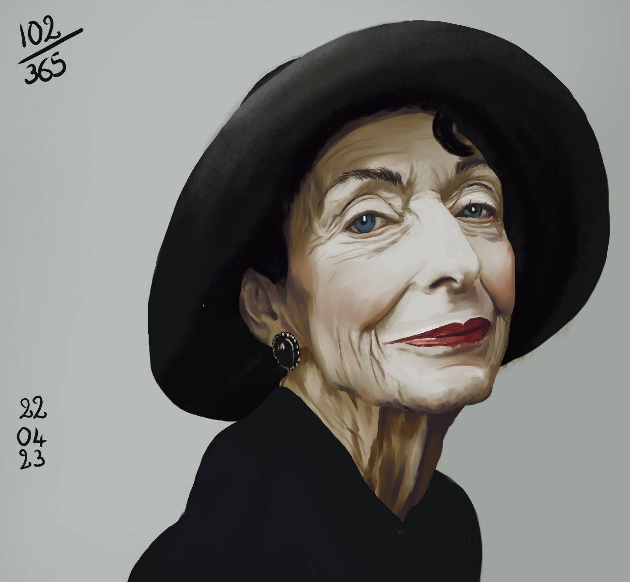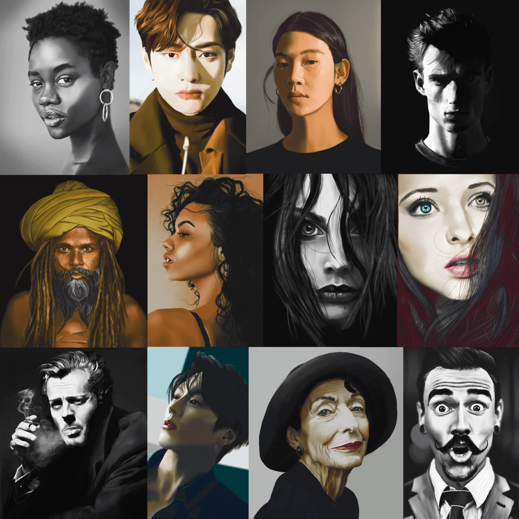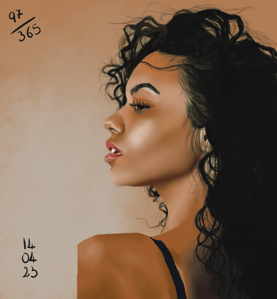 Rappel: Cette année, je participe au challenge 365 visages. Une étude de portrait par jour, tous les jours de l’année. Il existe des tas de groupes ou de propositions pour réaliser ce challenge. Quant à moi, puisque j’ai repris les cours, j’ai décidé de joindre celui proposé sur Digital Painting School, avec d’autres élèves. Le principe est simple: l’organisatrice du challenge nous donne une photo à étudier. On peut ne faire que le croquis, ou réaliser une étude en la peignant digitalement, ou à l’aquarelle, aux crayons de couleurs, aux feutres… Les possibilités sont infinies. Certains ont opté pour les croquis sur carnet, d’autres le font sur l’ordinateur… Certains s’essaient à la méthode de construction Loomis, d’autres essaient de faire sans, d’autres encore (et c’est mon cas) ont opté pour travailler en masses (pas de croquis, on applique les couleurs pour dessiner les volumes et les ombres, la lumière et on affine au fur et à mesure…). On peut se donner une limite de temps, ou profiter de cette expériences pour explorer les jeux de lumières, les valeurs, les teintes… bref, tout est possible. Les références alternent entre visages masculins et féminins, et sont très très variées: tous les ages, les ethnicités, en couleurs, en noir et blanc, voire même des peintures de maitres… un véritable régal, ce challenge!