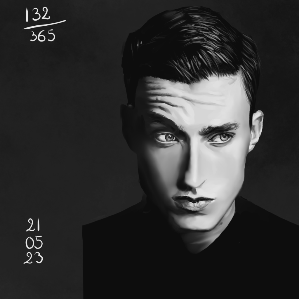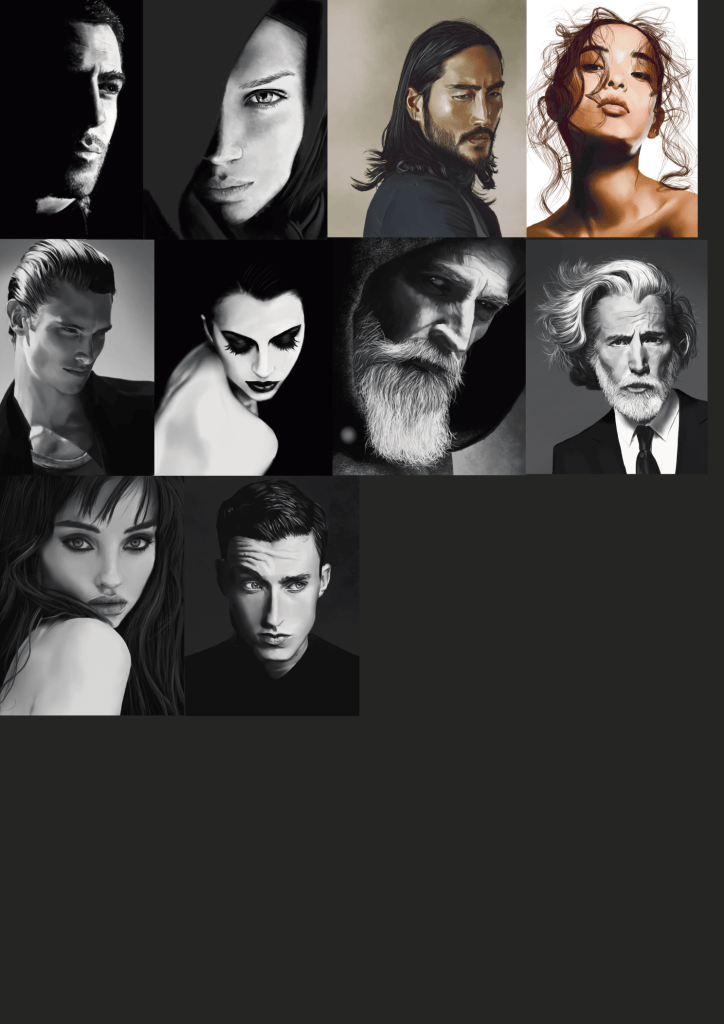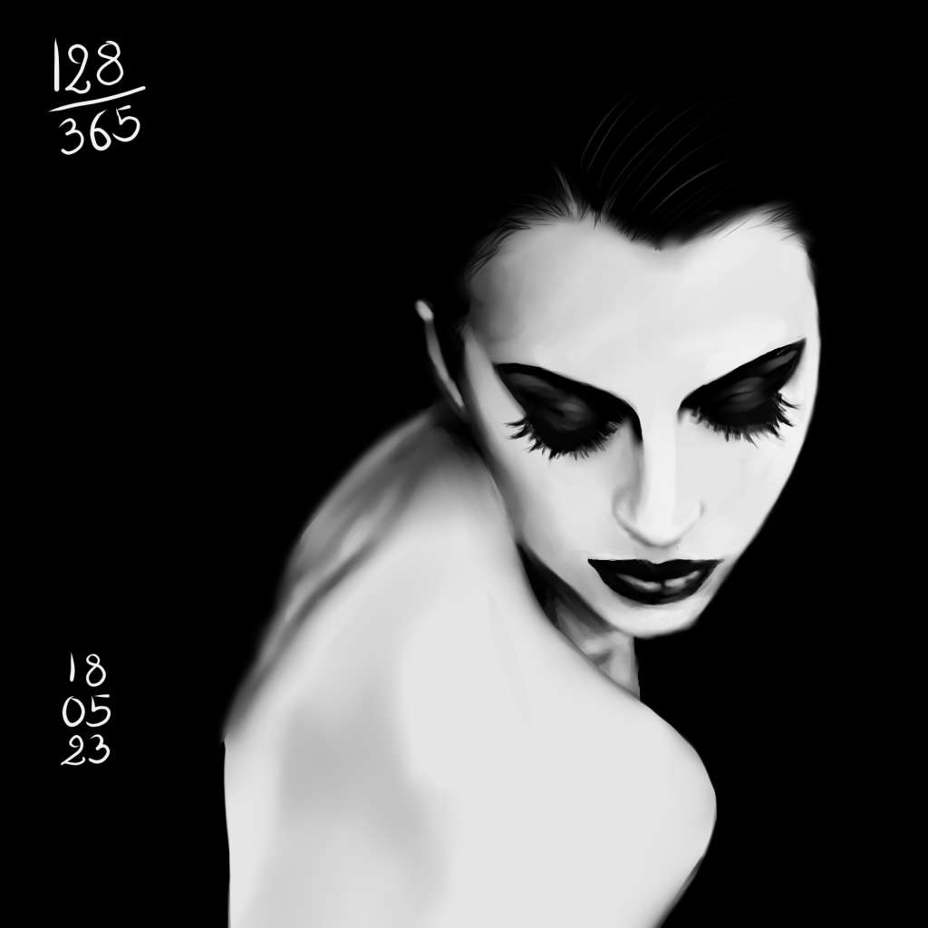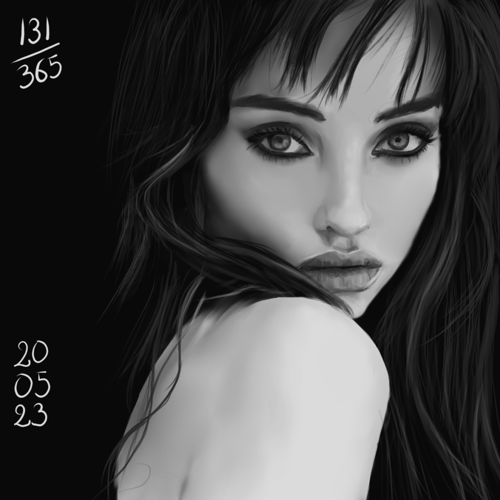 Rappel: Cette année, je participe au challenge 365 visages. Une étude de portrait par jour, tous les jours de l’année. Il existe des tas de groupes ou de propositions pour réaliser ce challenge. Quant à moi, puisque j’ai repris les cours, j’ai décidé de joindre celui proposé sur Digital Painting School, avec d’autres élèves. Le principe est simple: l’organisatrice du challenge nous donne une photo à étudier. On peut ne faire que le croquis, ou réaliser une étude en la peignant digitalement, ou à l’aquarelle, aux crayons de couleurs, aux feutres… Les possibilités sont infinies. Certains ont opté pour les croquis sur carnet, d’autres le font sur l’ordinateur… Certains s’essaient à la méthode de construction Loomis, d’autres essaient de faire sans, d’autres encore (et c’est mon cas) ont opté pour travailler en masses (pas de croquis, on applique les couleurs pour dessiner les volumes et les ombres, la lumière et on affine au fur et à mesure…). On peut se donner une limite de temps, ou profiter de cette expériences pour explorer les jeux de lumières, les valeurs, les teintes… bref, tout est possible. Les références alternent entre visages masculins et féminins, et sont très très variées: tous les ages, les ethnicités, en couleurs, en noir et blanc, voire même des peintures de maitres… un véritable régal, ce challenge!