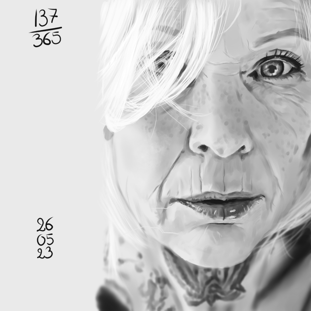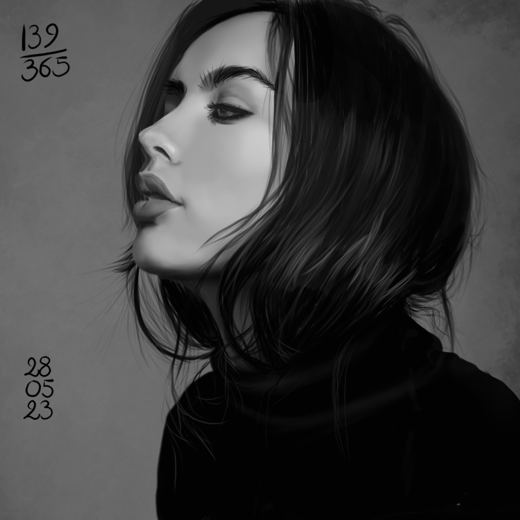 Rappel: Cette année, je participe au challenge 365 visages. Une étude de portrait par jour, tous les jours de l’année. Il existe des tas de groupes ou de propositions pour réaliser ce challenge. Quant à moi, puisque j’ai repris les cours, j’ai décidé de joindre celui proposé sur Digital Painting School, avec d’autres élèves. Le principe est simple: l’organisatrice du challenge nous donne une photo à étudier. On peut ne faire que le croquis, ou réaliser une étude en la peignant digitalement, ou à l’aquarelle, aux crayons de couleurs, aux feutres… Les possibilités sont infinies. Certains ont opté pour les croquis sur carnet, d’autres le font sur l’ordinateur… Certains s’essaient à la méthode de construction Loomis, d’autres essaient de faire sans, d’autres encore (et c’est mon cas) ont opté pour travailler en masses (pas de croquis, on applique les couleurs pour dessiner les volumes et les ombres, la lumière et on affine au fur et à mesure…). On peut se donner une limite de temps, ou profiter de cette expériences pour explorer les jeux de lumières, les valeurs, les teintes… bref, tout est possible. Les références alternent entre visages masculins et féminins, et sont très très variées: tous les ages, les ethnicités, en couleurs, en noir et blanc, voire même des peintures de maitres… un véritable régal, ce challenge!