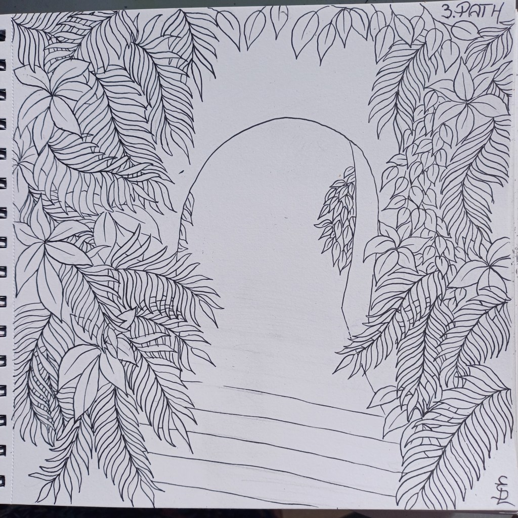 Et puis les détails… super malin…. la plupart ne se verront pas, mais pas grave, pourquoi ne pas commencer par le contour, feuille par feuille…. j’ai « juste » passé 3h entre le line art (le contour) et le remplissage du fond… bravo moi…