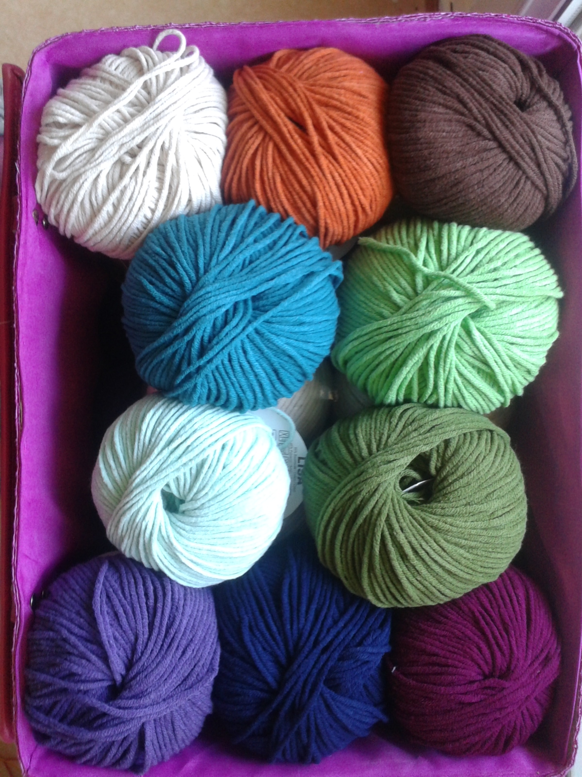 Et me voila à commander de la laine dans des couleurs improbables, vérifier que j’avais bien le crochet adéquat, et rêver… En attendant que ma laine arrive. Et c’est dur, très dur de toucher du doigt quelque chose qui nous tente vraiment sans pouvoir se lancer… Je ne gère pas très bien la frustration, entre ma quête du canapé et l’attente de ma laine, j’avais atteint ma limite… Alors j’ai farfouillé et je suis tombée sur UNE pelote de laine que j’avais achetée aux USA…. il y a donc plus de 10 ans… Une seule pelote de laine, mais de 220g ! Et de la grosseur parfaite pour mon crochet 5.5mm. Me voila donc lancée, déterminée à aller aussi loin que le fil me le permettrait, juste pour voir si il me restait des souvenirs des mailles et de compréhension des instructions (j’ai appris à crocheter aux USA, depuis je ne suis capable de lire que des instructions en anglais… sinon, il faut que je traduise…. si si!).
