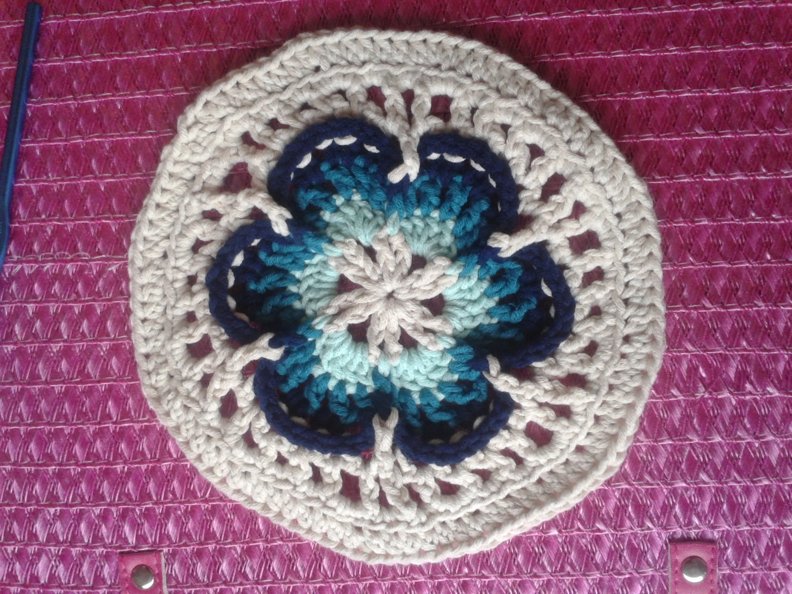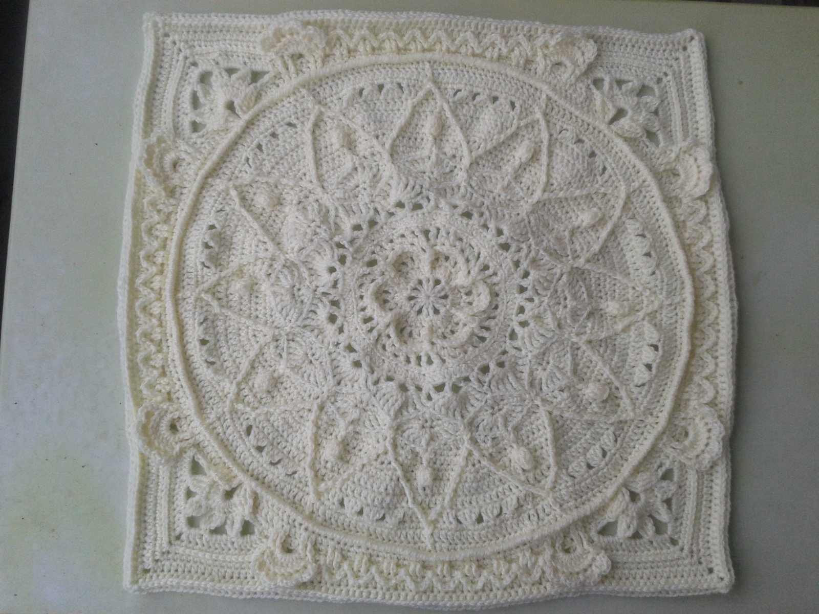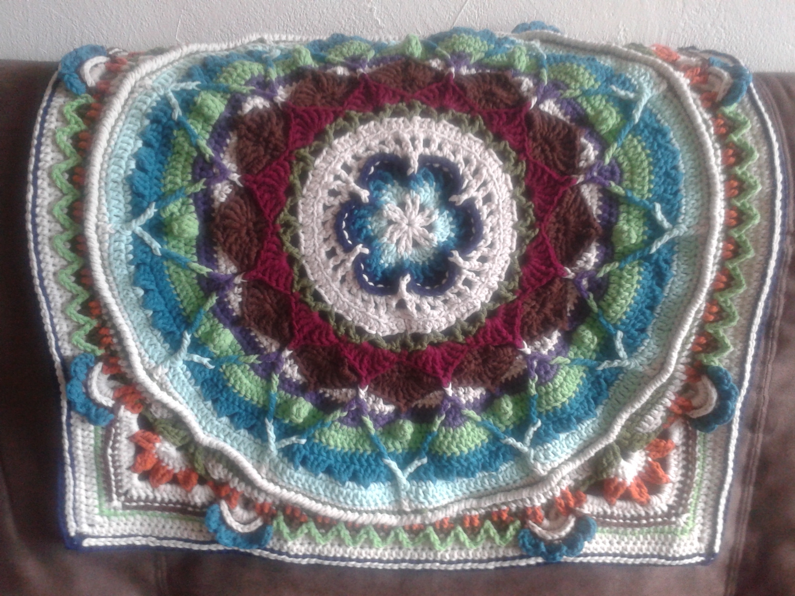J’attends ma laine pour faire la couverture définitive, et rattraper le retard que ‘ai pris (ben oui, elles en sont déjà à la 6ème semaine!). J’ai hâte, parce que j’adore les motifs, les couleurs, et que la simple idée de voir la gaufrette enveloppée dans ces mailles me plaque un sourire d’une oreille à l’autre. Et je me dis que je n’ai pas la choix: vu la taille de la couverture, il va me falloir un canapé avant que je la finisse…. Il me reste donc 14 semaines… je sens que je vais finir par le trouver, ce graal….