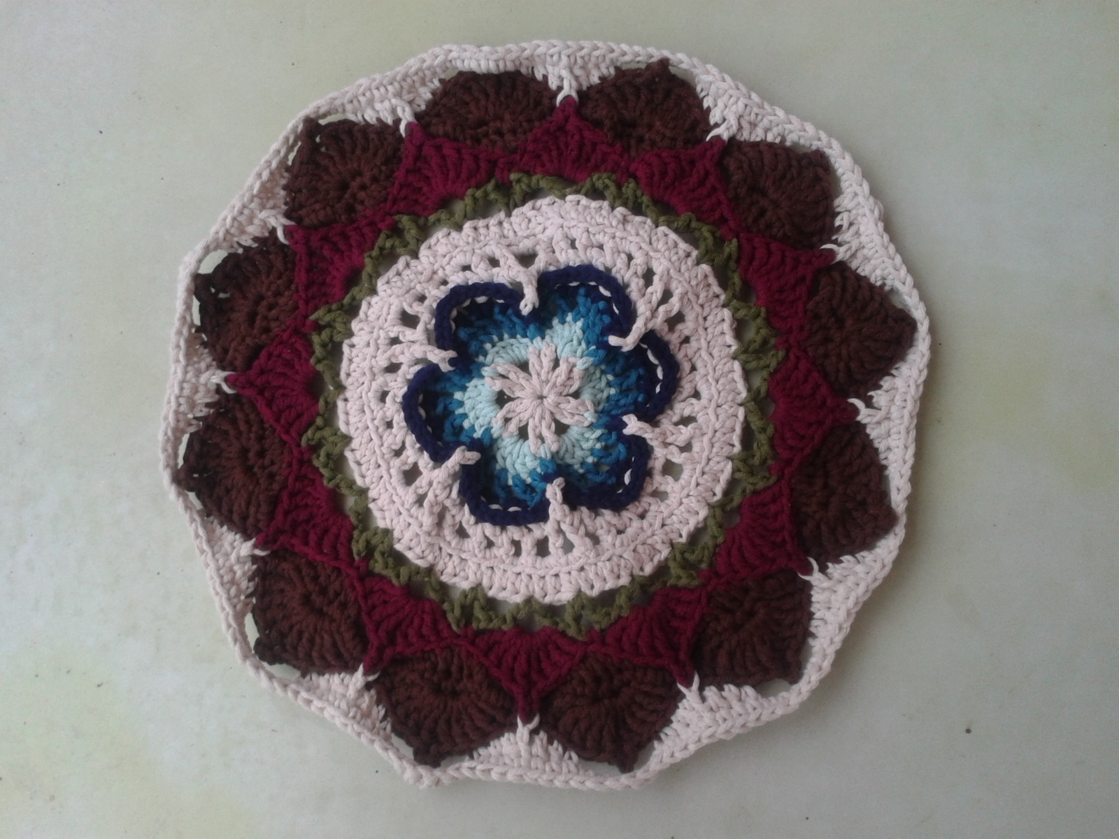 En attendant, la gaufrette est ravie d’avoir un flocon de neige/un mandala comme couverture pour ses peluches!