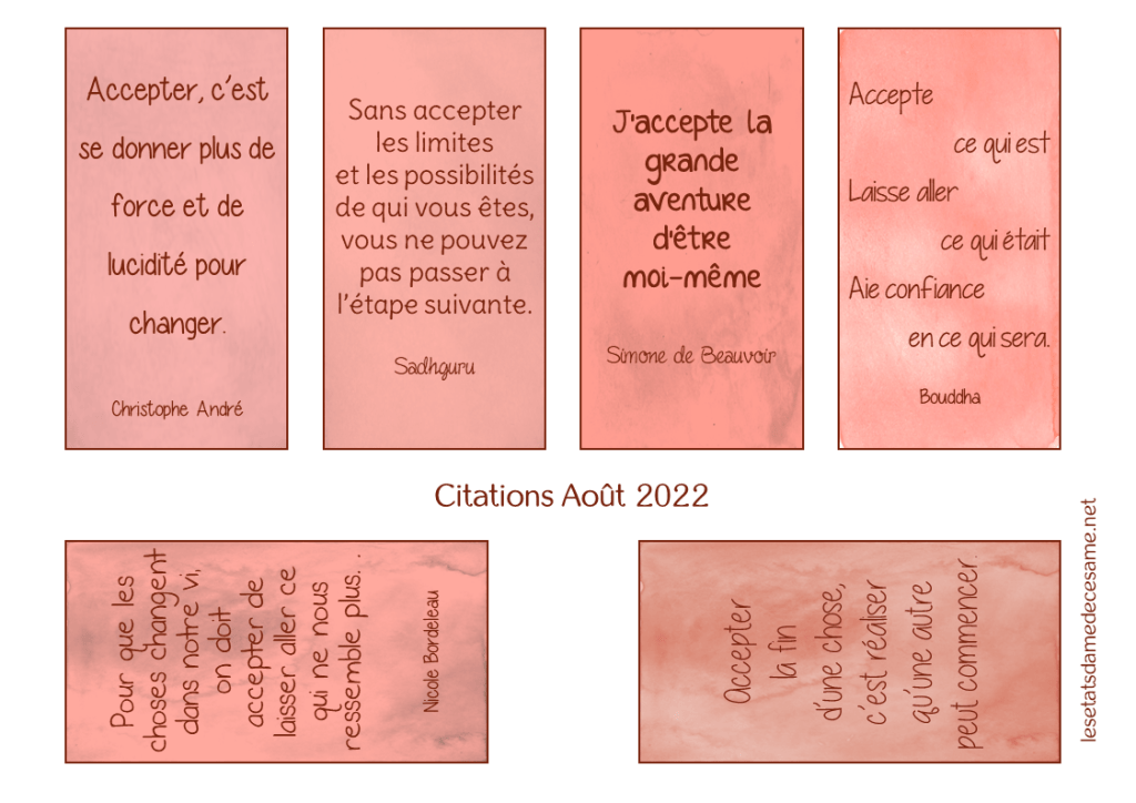 - 3. J’accepte ce qui change: en laissant partir ce qui n’a plus lieu d’être, en lâchant prise, en apprivoisant ma peur de l’inconnu…