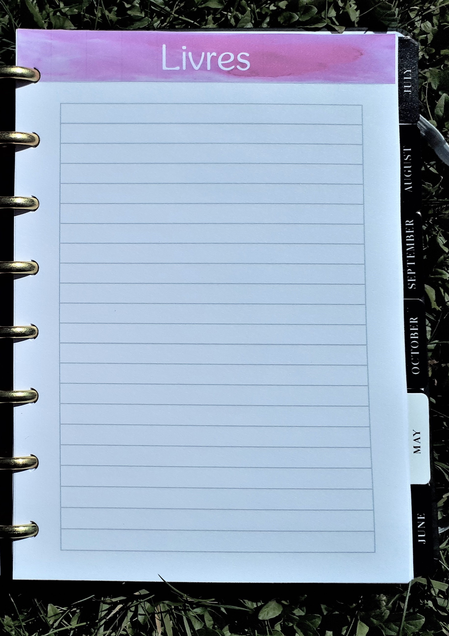 - Des pages de notes. Ce sont les mêmes que celles de la version planner.