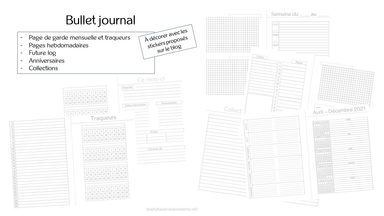 Contrairement à la version planner, la version bullet journal est consituté de plusieurs pdf.