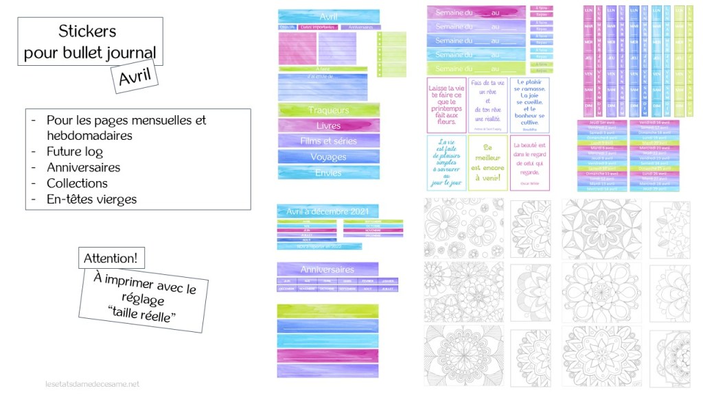 Attention, ils sont à imprimer avec le réglage ‘taille réelle’ pour qu’ils puissent correspondre à votre planner ou bullet journal.