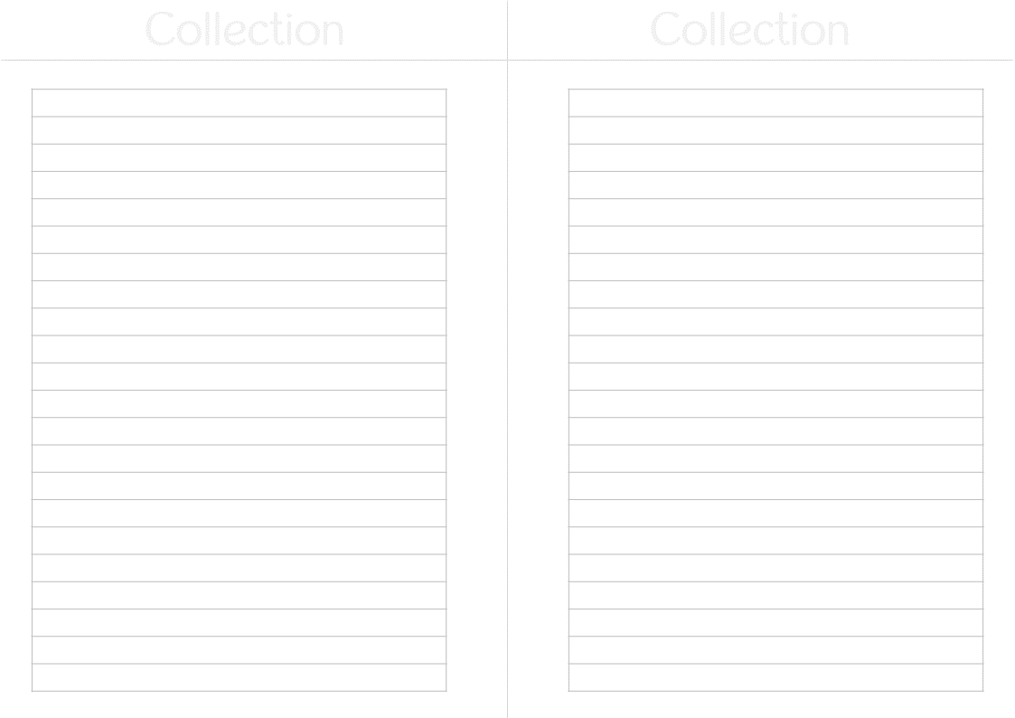 - D’autres pages pour les collections. Ce pdf contient 2 feuilles, donc 4 pages de collections. Si celles contenues dans le pdf précédent ne vous suffisent pas!