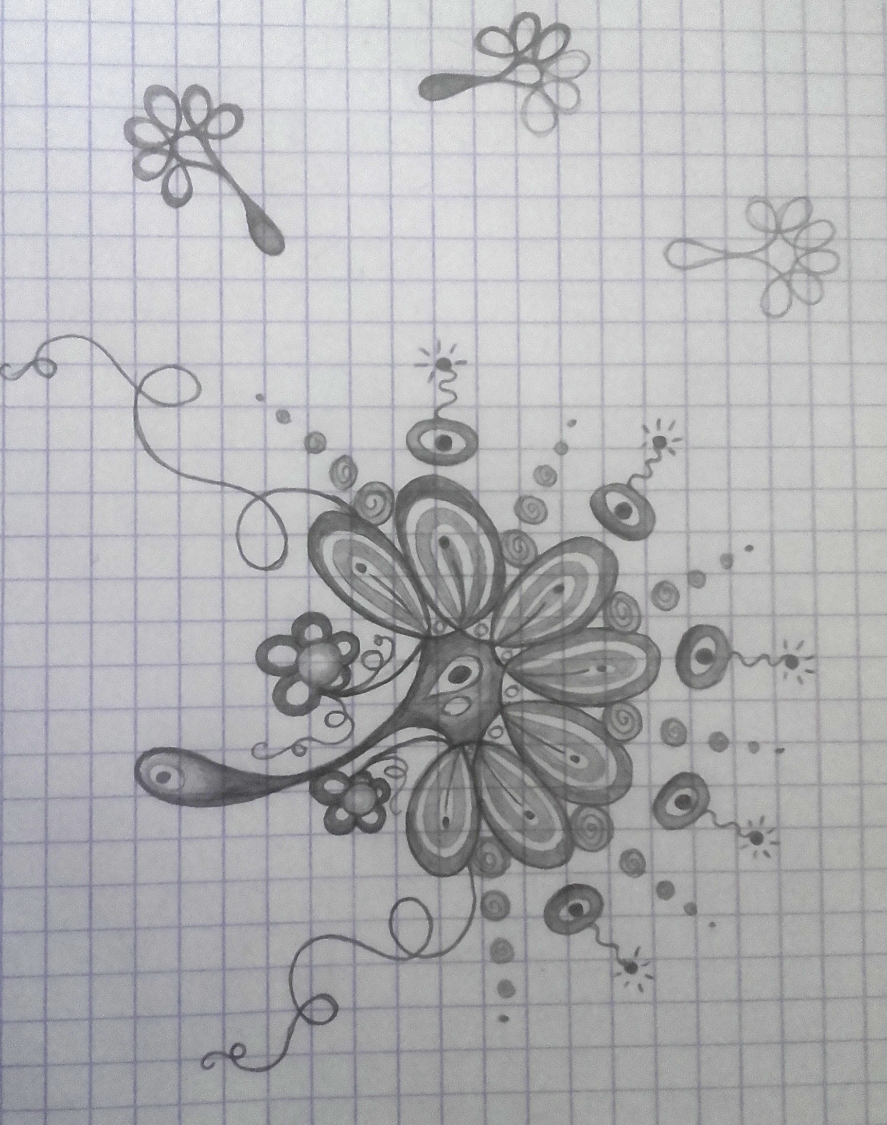 Sometimes my doodles are useful… My classroom looks onto the hallway…. and a horrid squale model…. so the kids are disturbed each and every time someone walks into the hall (because each and everytime lights are turning on… so nice….. ) and the corner is really dark… So I took the markers left from last year, to test them (hehe) and I doodled that: 25 x 78 inches of doodles…. lots of fun… took me two days…. but sometimes you need to do what has to be done….