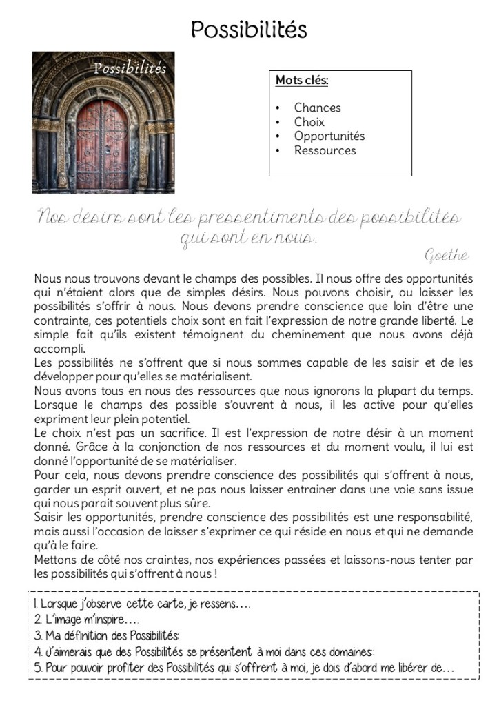 Je me suis rendue compte avec le temps que loin d’être aléatoires, ces possibilités qui s’offrent à moi sont le fruit de désirs qui demandent à s’exprimer, en conjonction avec les ressources qui se trouvent déjà en moi et avec le moment adéquat pour qu’ils puissent le faire le mieux possible.