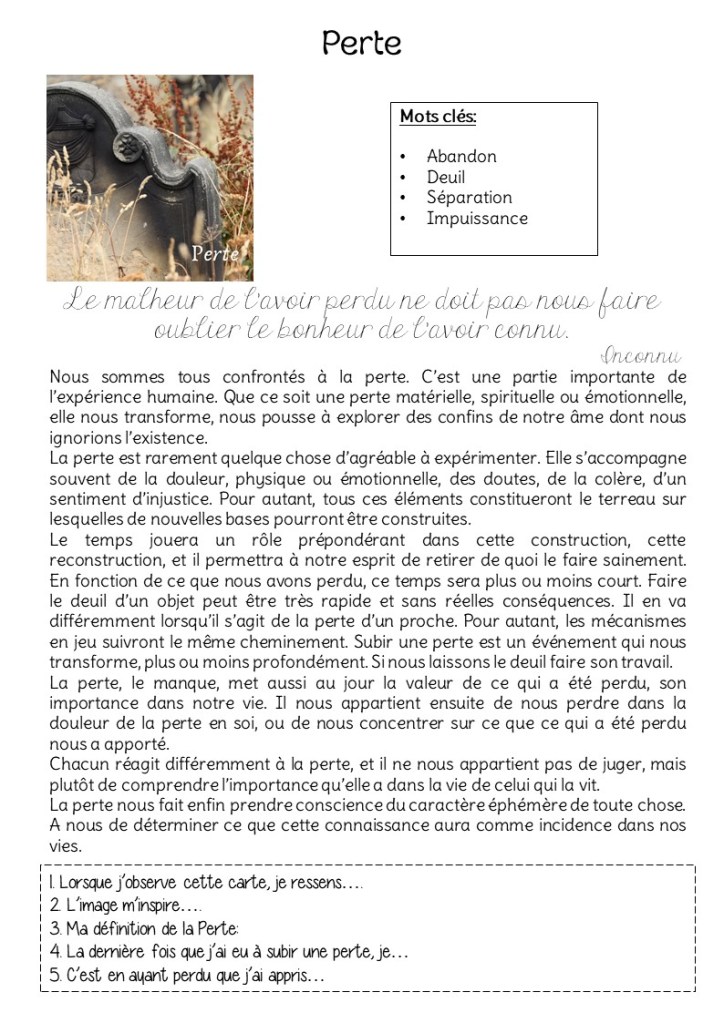 Nous voici arrivés à une étape un peu compliquée encore pour moi, même si le temps fait son œuvre. Aussi douloureuse soit-elle, la perte est également source de transformation et dévolution. Il nous appartient de l’apprivoiser et de la surmonter.