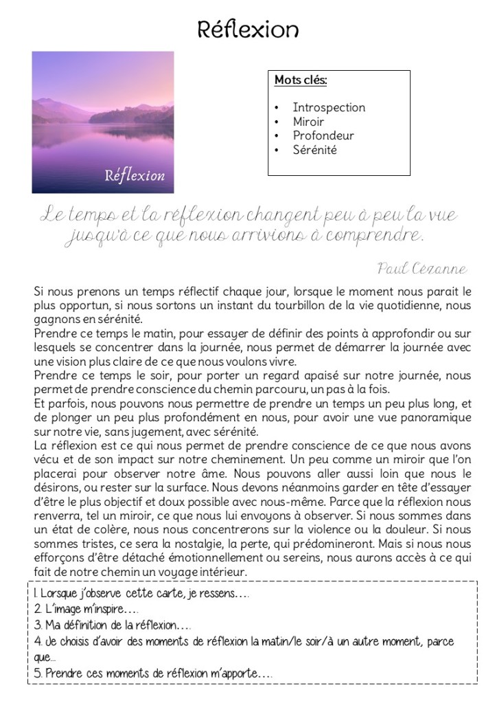 Demain nous continuerons dans le même esprit en nous confrontant à notre attitude face aux Épreuves.