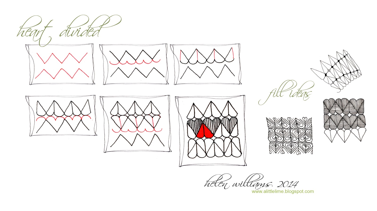 - au verso: le motif, rempli avec des minis coeurs. J’ai préféré cette version à la version hachurée et pourtant, j’ai une passion pour les hachures…..