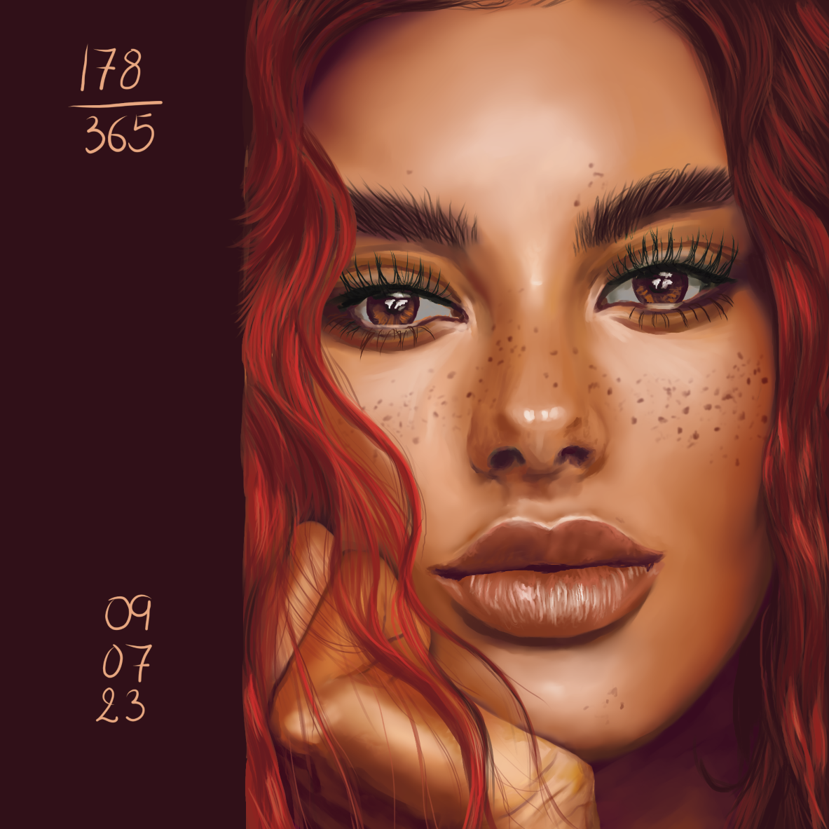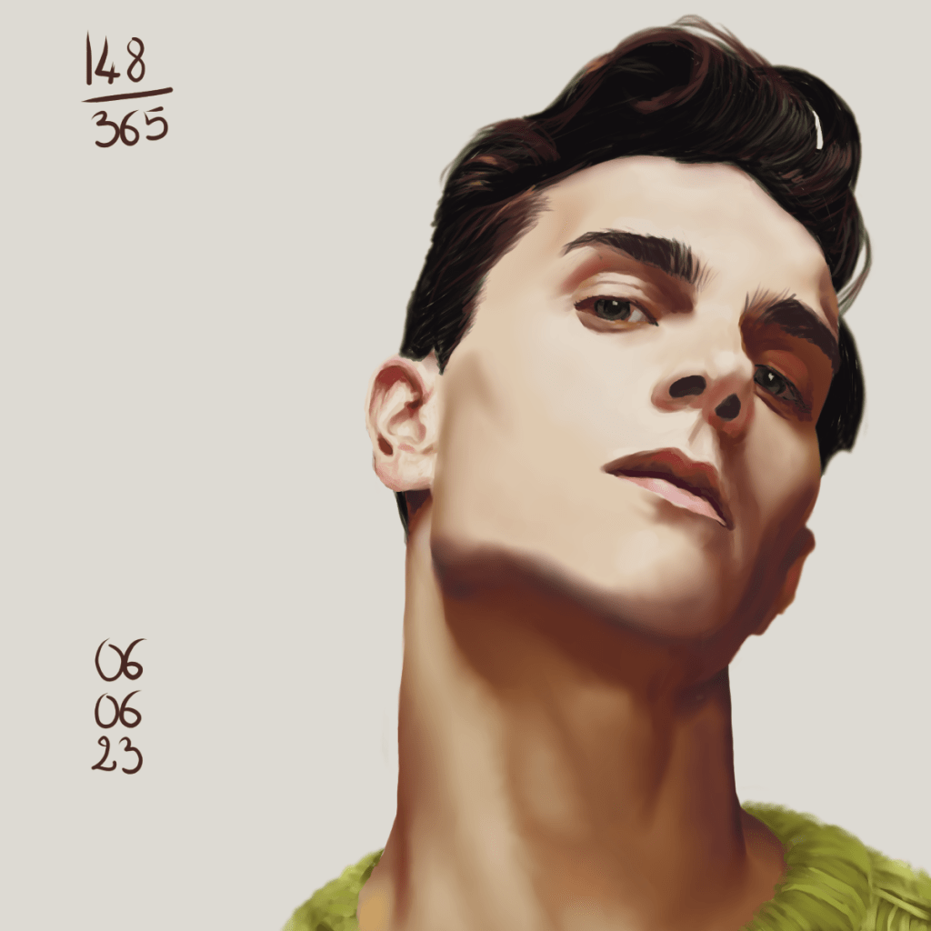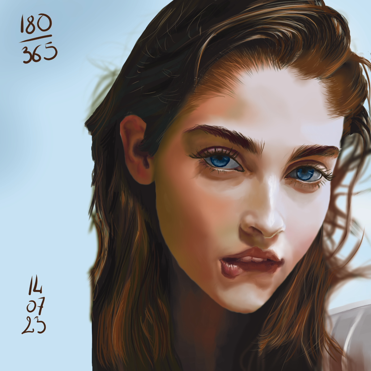 Cet été a été très compliqué en définitive… beaucoup trop chaud pour moi ou pour mon ordinateur… J’ai donc pris beaucoup de retard… je ne ferai définitivement pas 365 portraits cette année (et comment ai-je pu penser que ce serait possible? Nan mais des fois, je me pose des questions sur ma santé mentale hahaha). Mais j’ai continué à faire des études, quand c’était possible, pour le plaisir de décrypter des expressions, des teintes, des poses… bref, je n’ai pas perdu complètement le fil. Début septembre, j’ai aussi décidé de me lancer dans un projet complètement différent pendant une semaine, et je vous le présenterai à la fin de cet article, mais j’ai depuis repris les études avec un plaisir décuplé. Un reset complet, en quelque sorte!