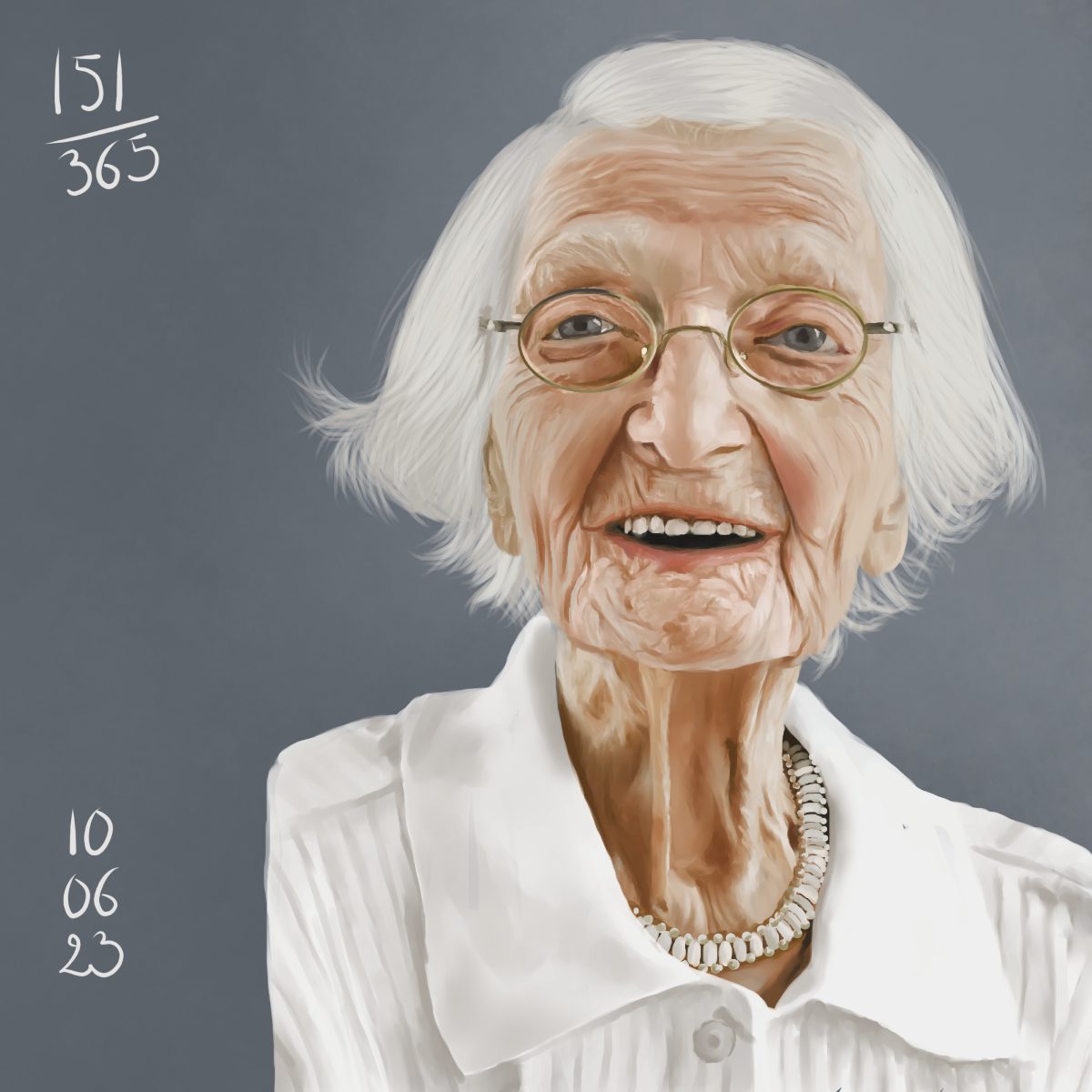 Des poils, des rides, des ombres de fou, de la texture… Mais j’avais cette référence dans mon dossier depuis le début ou presque, et elle me faisait de l’oeil… je me suis donc lancée cette fois, et je ne regrette pas du tout! j’ai même trouvé la brush parfaire pour la texture de son vêtement! Du pur bonheur, ce portrait, et je pense avoir en plus réussi à rendre l’intensité qu’elle m’inspirait.