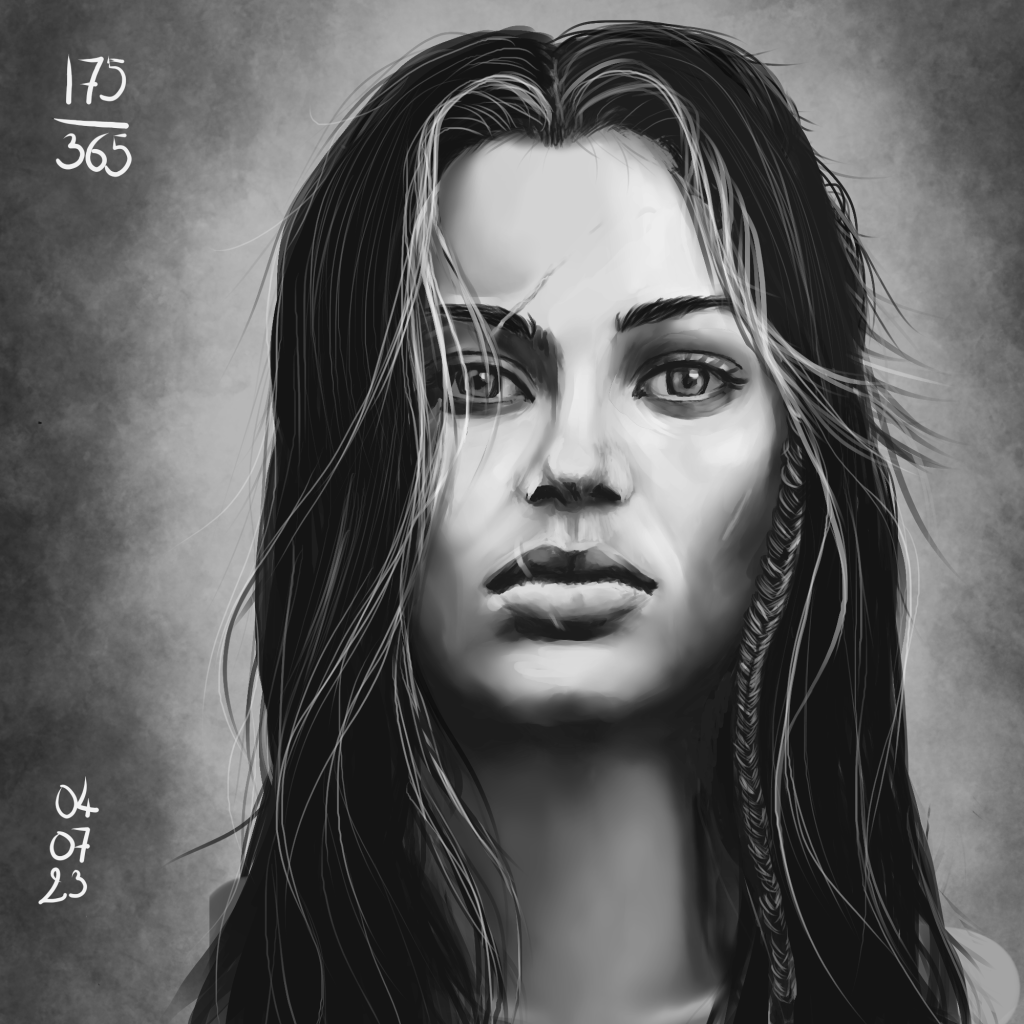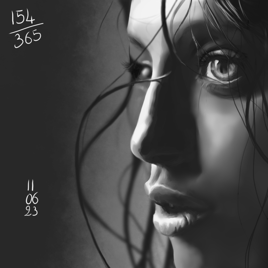 Rappel: Cette année, je participe au challenge 365 visages. Une étude de portrait par jour, tous les jours de l’année. Il existe des tas de groupes ou de propositions pour réaliser ce challenge. Quant à moi, puisque j’ai repris les cours, j’ai décidé de joindre celui proposé sur Digital Painting School, avec d’autres élèves. Le principe est simple: l’organisatrice du challenge nous donne une photo à étudier. On peut ne faire que le croquis, ou réaliser une étude en la peignant digitalement, ou à l’aquarelle, aux crayons de couleurs, aux feutres… Les possibilités sont infinies. Certains ont opté pour les croquis sur carnet, d’autres le font sur l’ordinateur… Certains s’essaient à la méthode de construction Loomis, d’autres essaient de faire sans, d’autres encore (et c’est mon cas) ont opté pour travailler en masses (pas de croquis, on applique les couleurs pour dessiner les volumes et les ombres, la lumière et on affine au fur et à mesure…). On peut se donner une limite de temps, ou profiter de cette expériences pour explorer les jeux de lumières, les valeurs, les teintes… bref, tout est possible. Les références alternent entre visages masculins et féminins, et sont très très variées: tous les ages, les ethnicités, en couleurs, en noir et blanc, voire même des peintures de maitres… un véritable régal, ce challenge!