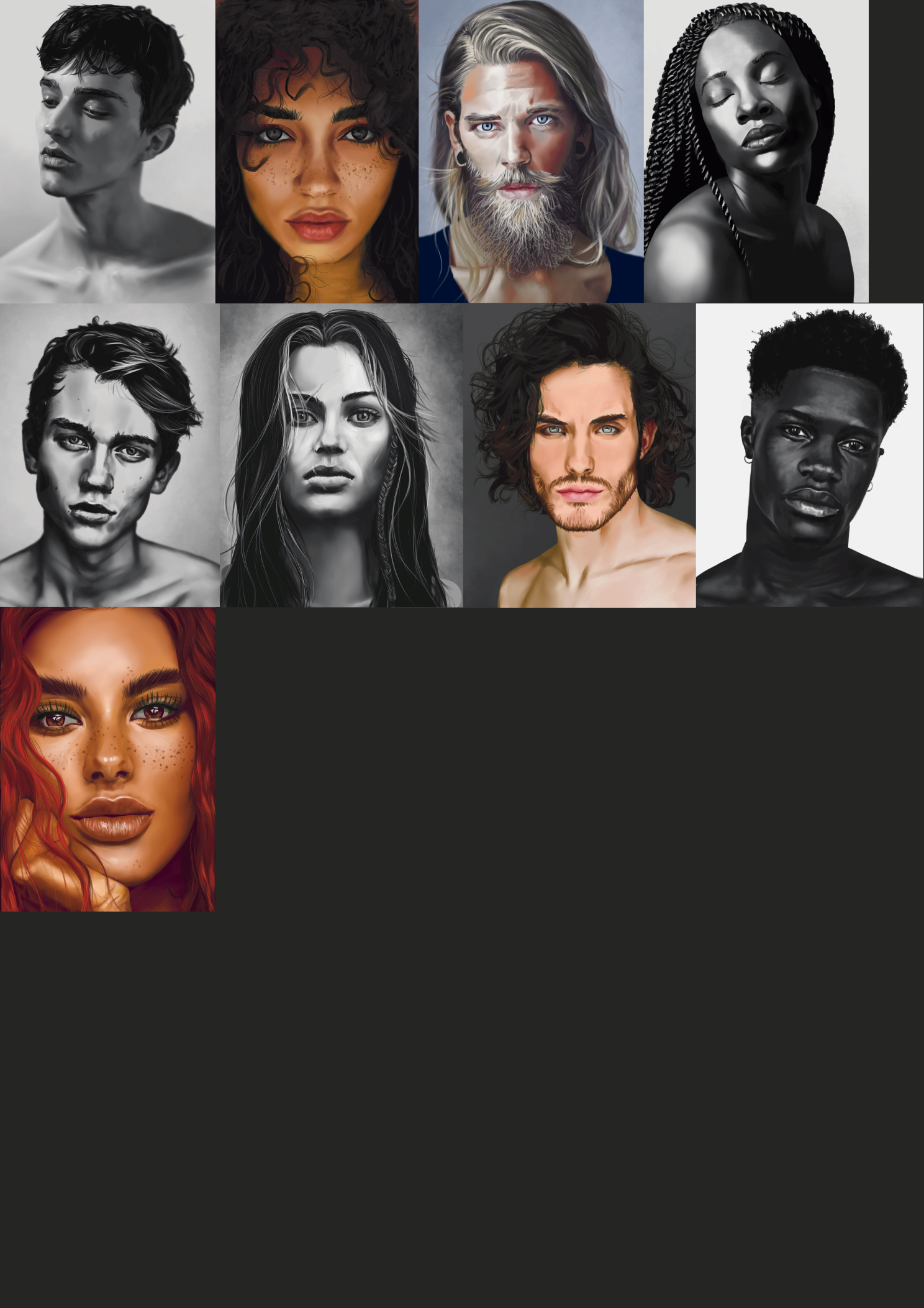 Comme d’habitude, voici un aperçu des portraits que j’ai faits depuis le début: