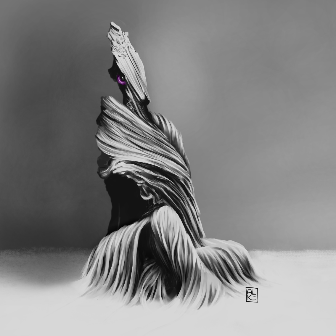Je suis beaucoup plus contente de celui-ci, clairement. Parce que le noir et blanc est ma zone de confort, que tout semblait être plus fluide… et parce que j’avais vraiment vraiment envie d’étudier cette référence… j’ai toujours eu un petit faible pour les portraits plus ‘intenses’. C’est mon truc, voila tout!