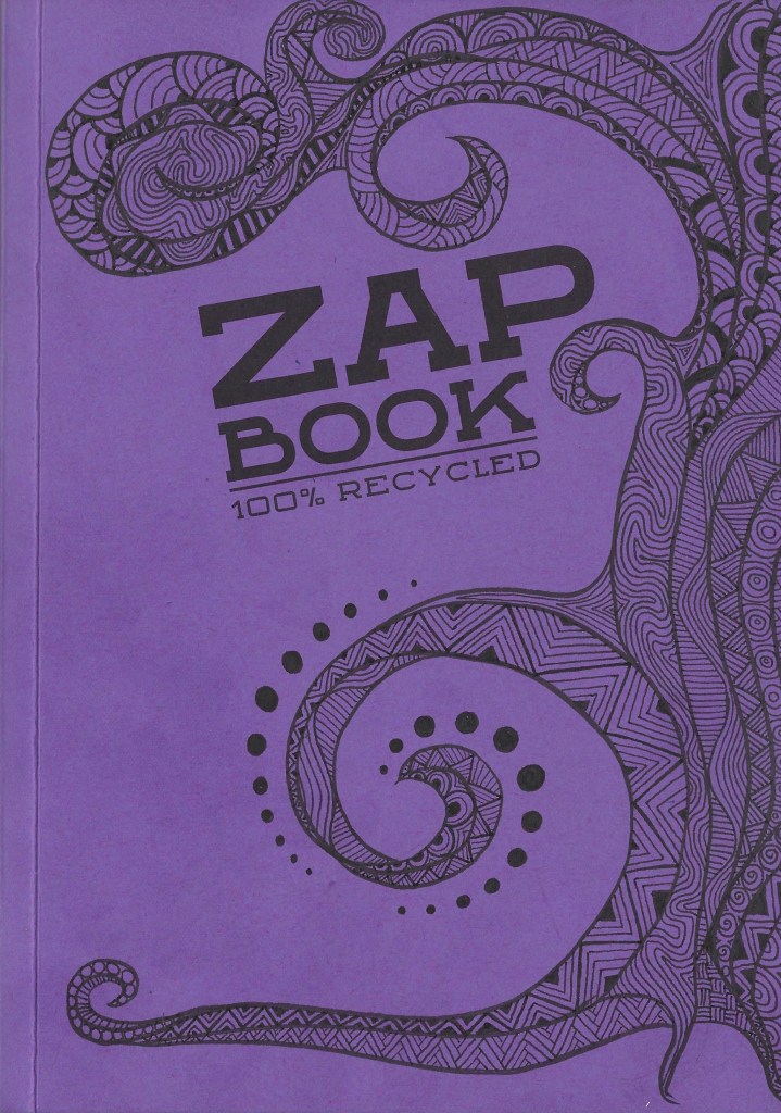 parce que dans la journée, je me suis attaquée à mon carnet de croquis… Je voulais plastifier sa couverture pour la renforcer, et ajouter peut être un carton à l’intérieur, pour y glisser des trucs. Mais je la trouvais un peu… un peu…. bref…. voila quoi… du coup, j’ai attrapé mes feutres (ah, et là, ils étaient parfaits!!). Et j’ai commencé à gribouiller… Pour le moment, j’en suis là: