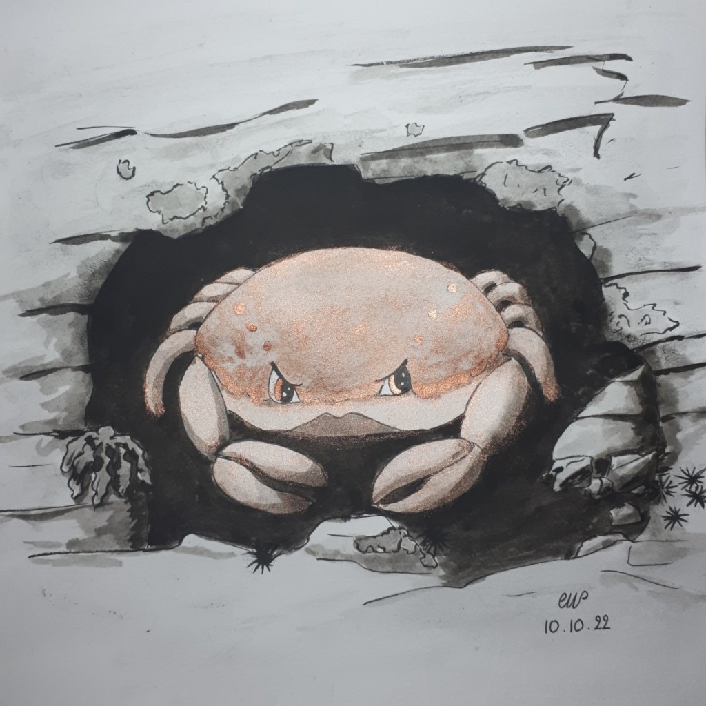 I really had fun with this one! I feel freer with inks, not trying to go for a perfect illustration, but more for the experiment and the fun. He looks far crabbier without light though hahaha