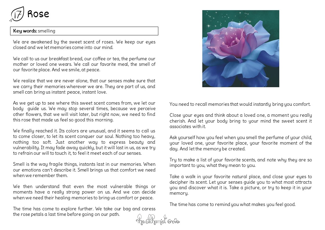 This card was my first attempt to draw a rose. And it took me forever, but I am really happy with the result. I loved playing with blending colors, and trying to express the delicateness of the petals, the volume of the flower. I chose unusual colors because… why not? It’s probably the one that took me the most time so far. And I am sure there is a quicker way to do, but I enjoyed the process of drawing it. I hope you like it too. Or, and yes, it had to come with its own magic too!