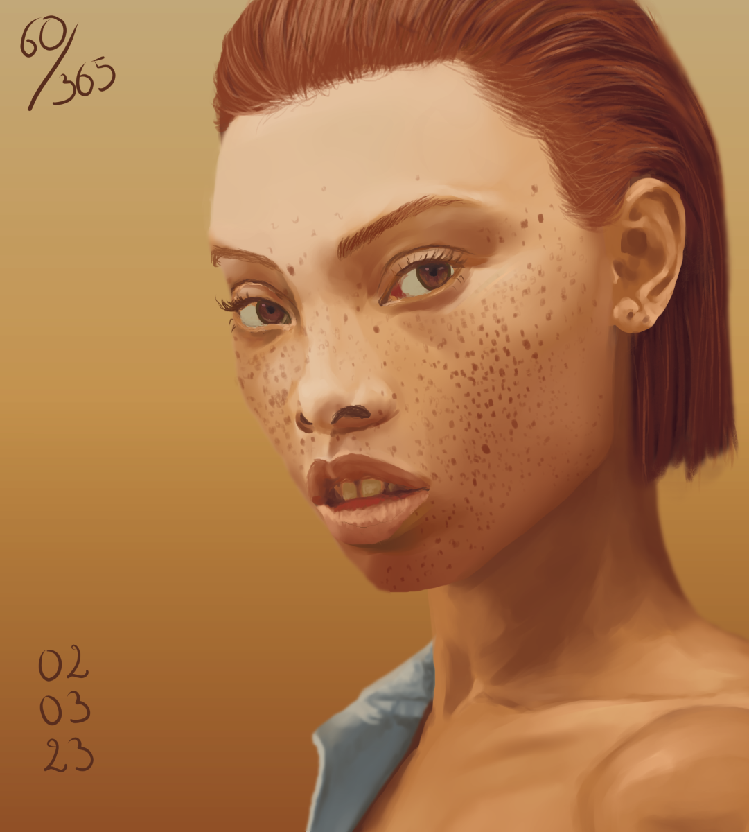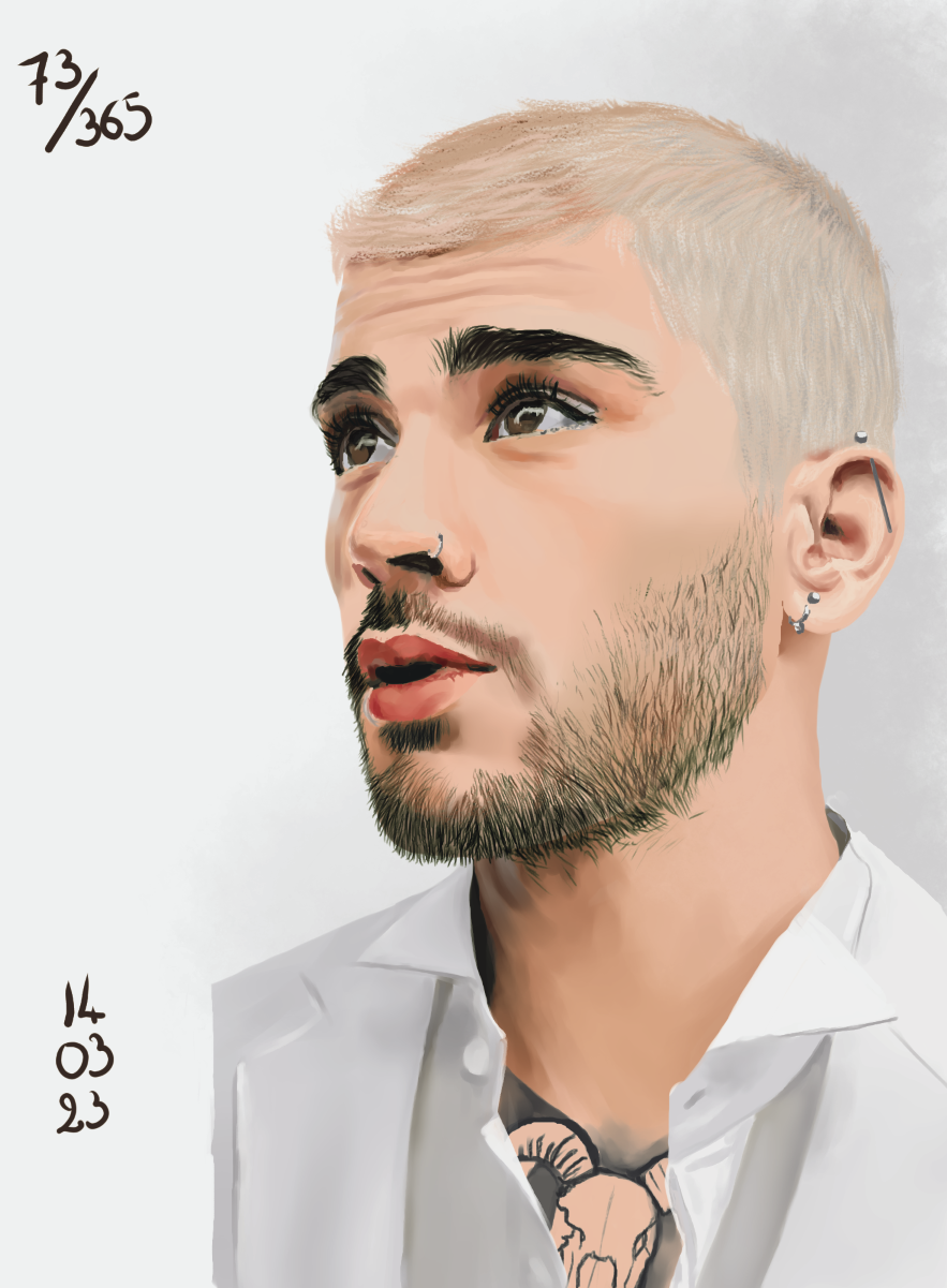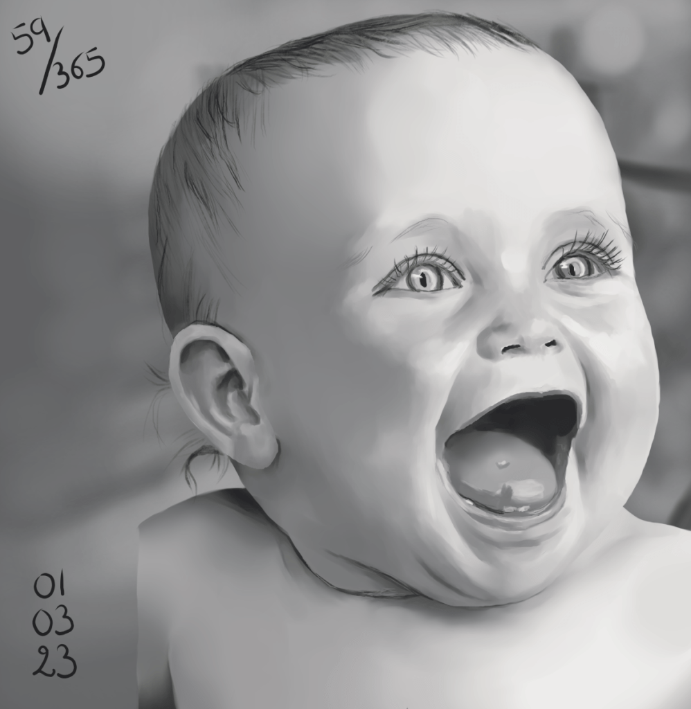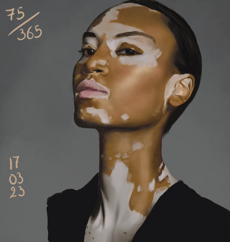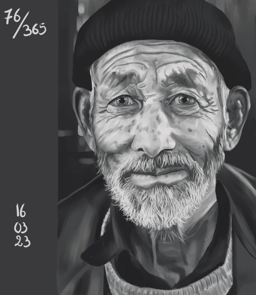 Rappel: Cette année, je participe au challenge 365 visages. Une étude de portrait par jour, tous les jours de l’année. Il existe des tas de groupes ou de propositions pour réaliser ce challenge. Quant à moi, puisque j’ai repris les cours, j’ai décidé de joindre celui proposé sur Digital Painting School, avec d’autres élèves. Le principe est simple: l’organisatrice du challenge nous donne une photo à étudier. On peut ne faire que le croquis, ou réaliser une étude en la peignant digitalement, ou à l’aquarelle, aux crayons de couleurs, aux feutres… Les possibilités sont infinies. Certains ont opté pour les croquis sur carnet, d’autres le font sur l’ordinateur… Certains s’essaient à la méthode de construction Loomis, d’autres essaient de faire sans, d’autres encore (et c’est mon cas) ont opté pour travailler en masses (pas de croquis, on applique les couleurs pour dessiner les volumes et les ombres, la lumière et on affine au fur et à mesure…). On peut se donner une limite de temps, ou profiter de cette expériences pour explorer les jeux de lumières, les valeurs, les teintes… bref, tout est possible. Les références alternent entre visages masculins et féminins, et sont très très variées: tous les ages, les ethnicités, en couleurs, en noir et blanc, voire même des peintures de maitres… un véritable régal, ce challenge!