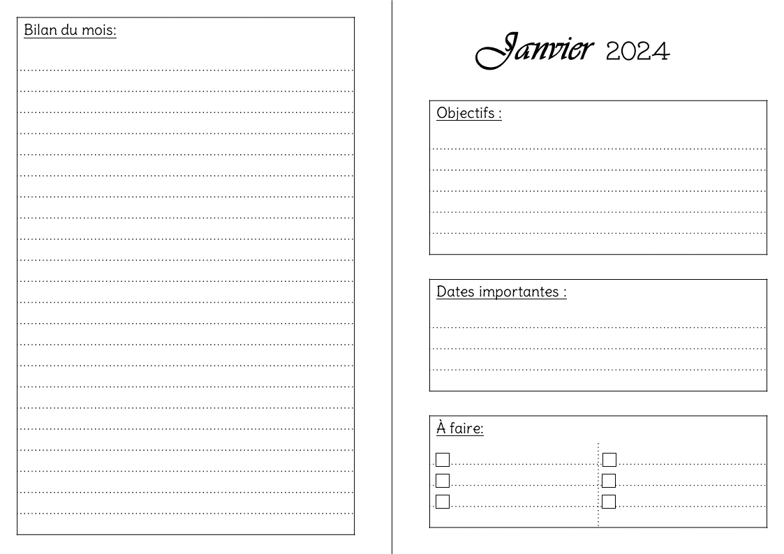 Comme d’habitude, vous trouverez les pages mensuelles, les citations et les images d’inspiration, ainsi que les pages hebdomadaires. J’espère qu’il vous plaira!